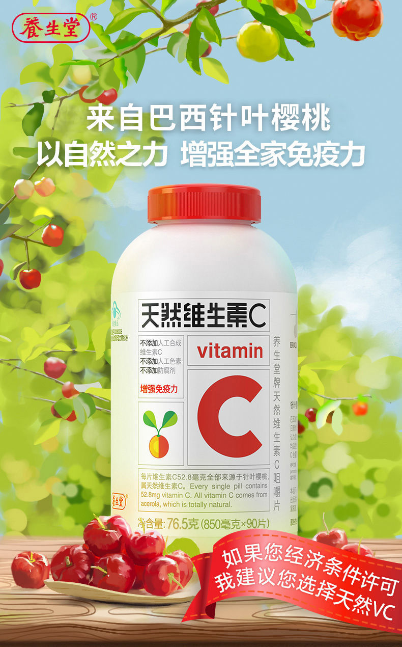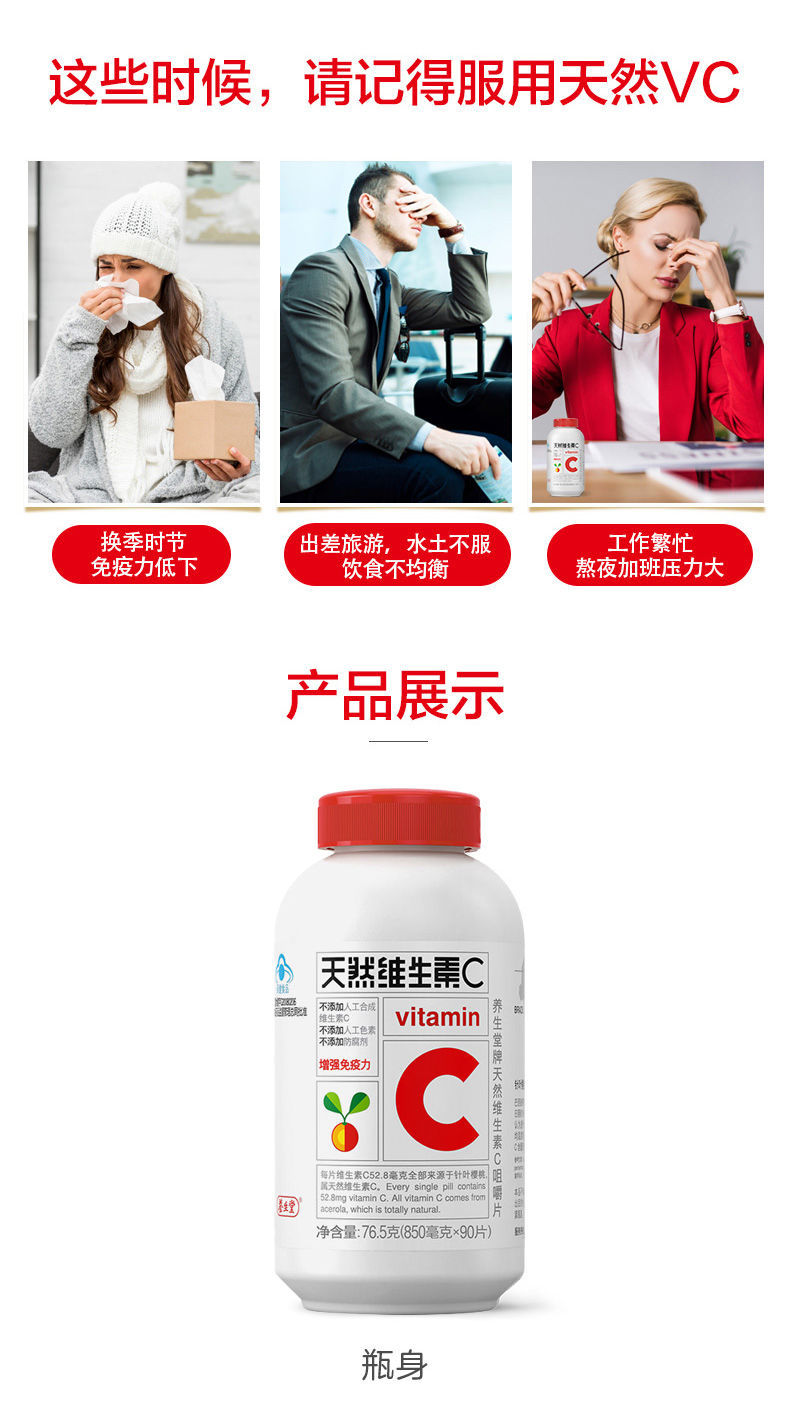 商品名称:养生堂天然维生素e120粒Vc90片组合维c成人维生素c咀嚼片保健品 增强免疫力美容