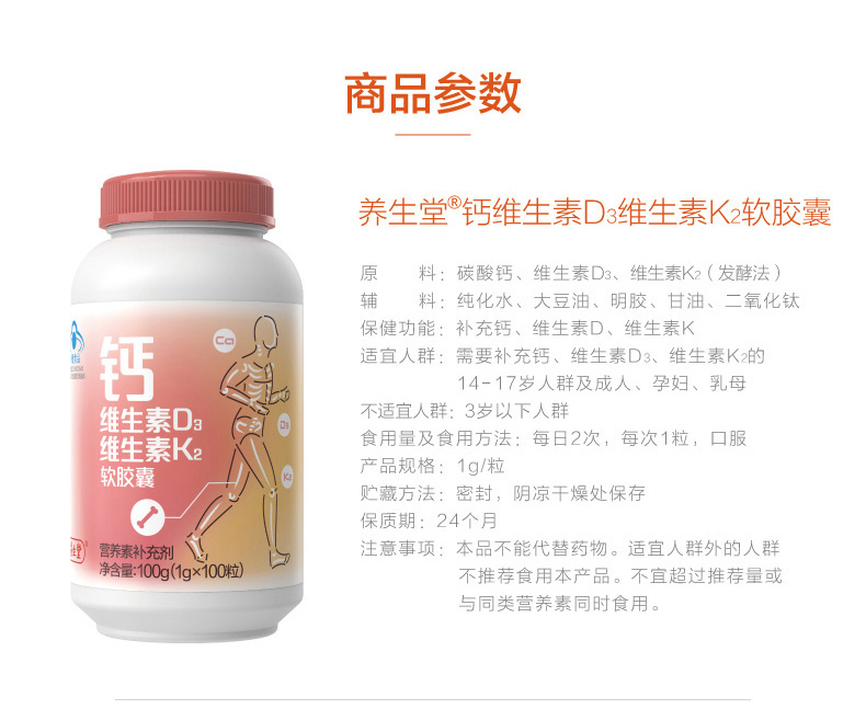 商品名称:【新升级120粒】无糖液体钙中老年补钙关节腰腿疼腿抽筋骨质疏松养生堂钙DK120粒钙片