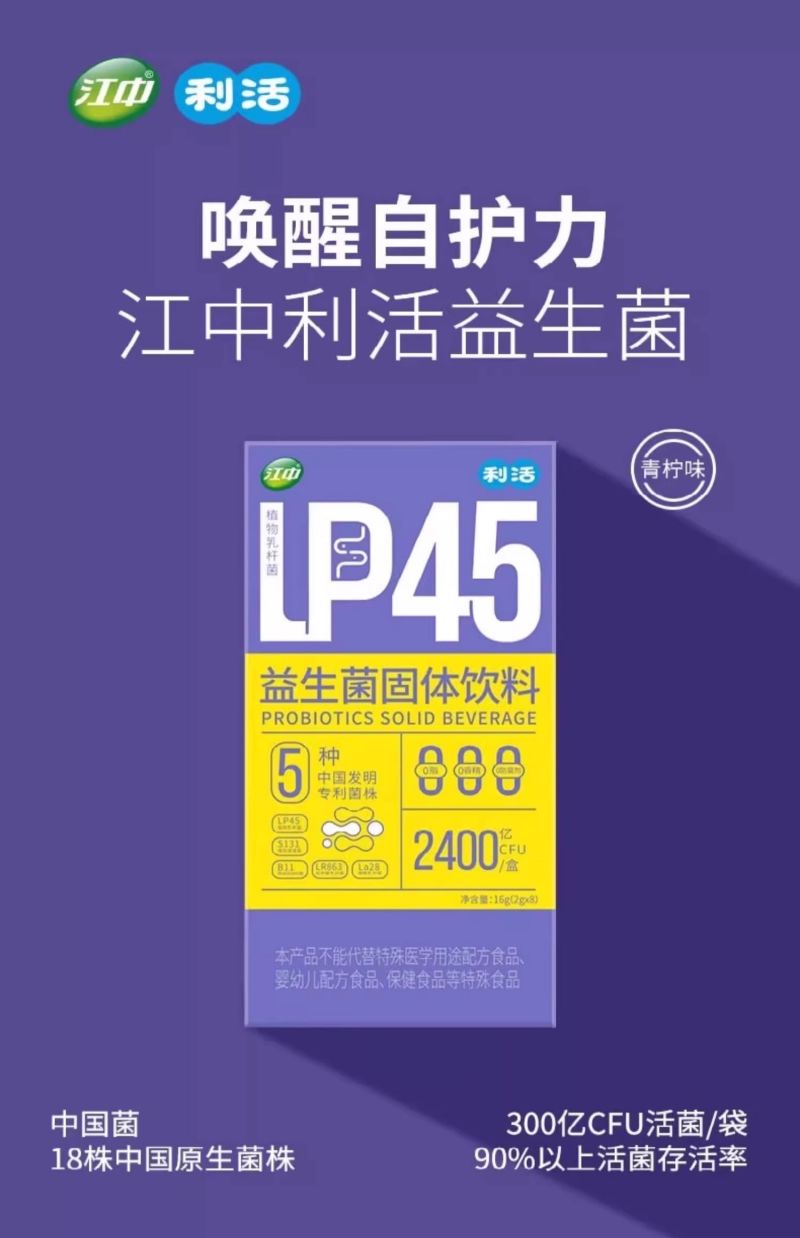 江中利活益生菌固体冲剂2400亿CFU/盒成人儿童益生菌植物乳杆菌青柠味 2g*8条
