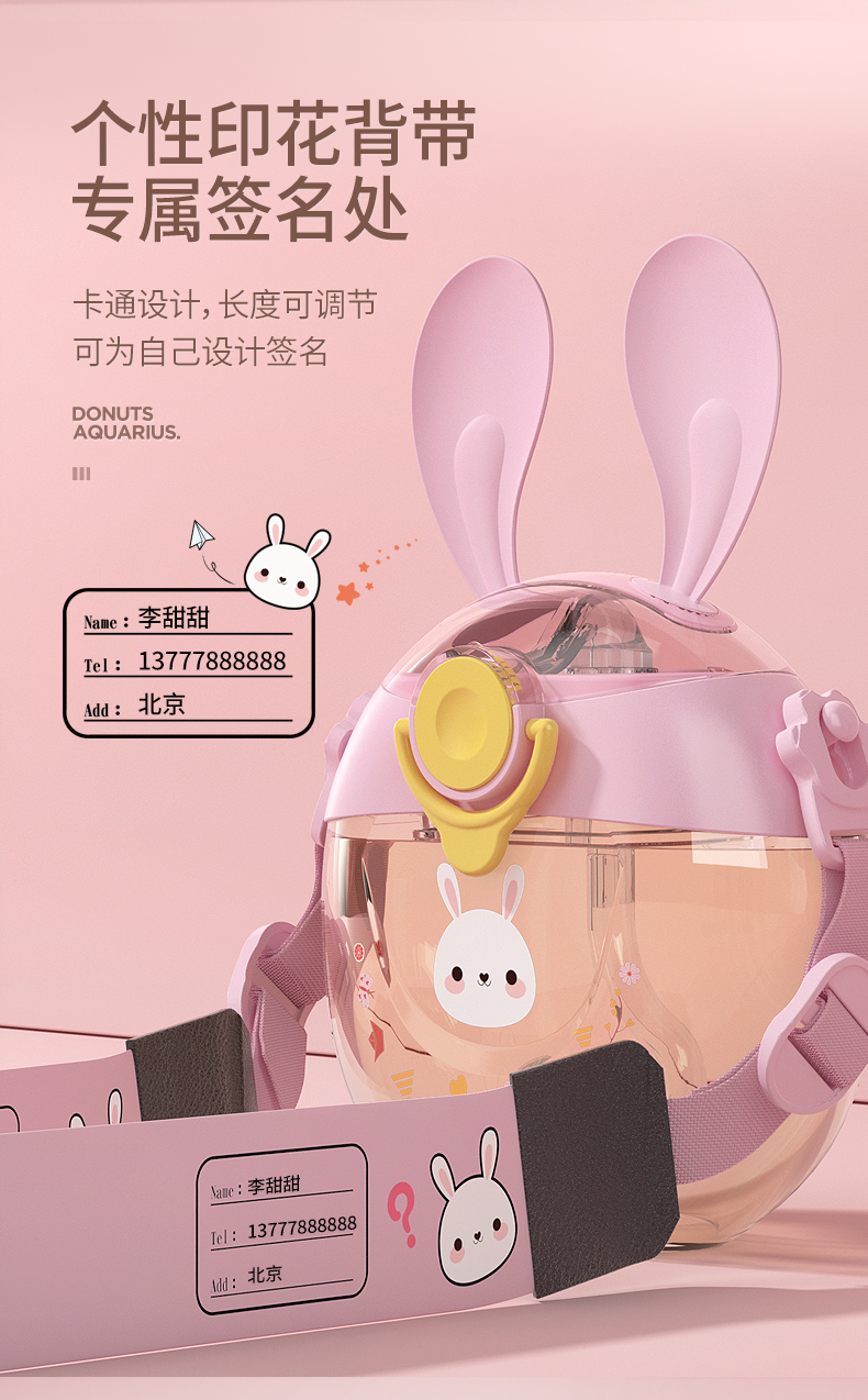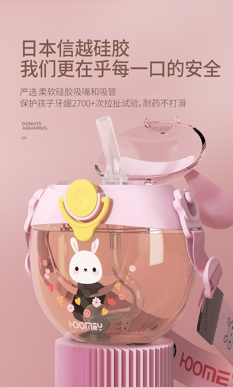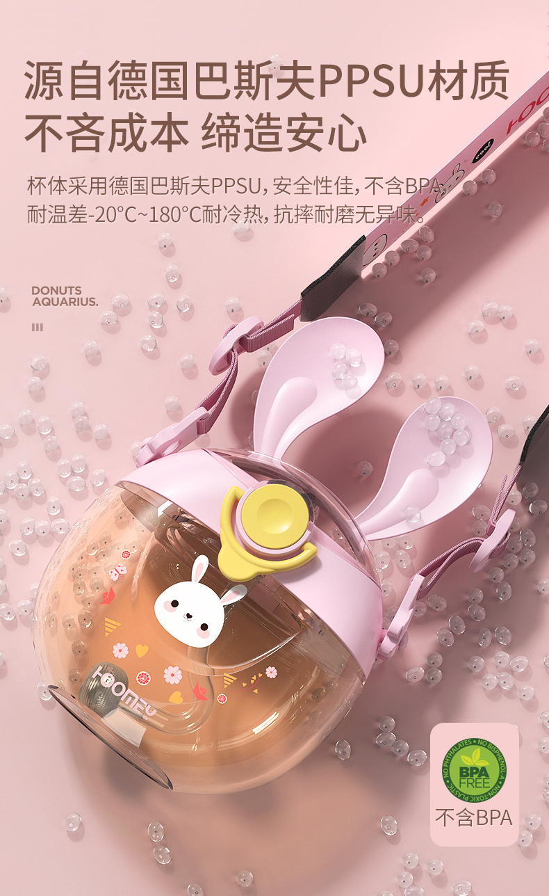 商品名称:儿童吸管杯甜甜圈水杯子ppsu夏季仙女背带超可爱宝宝上学专用水壶