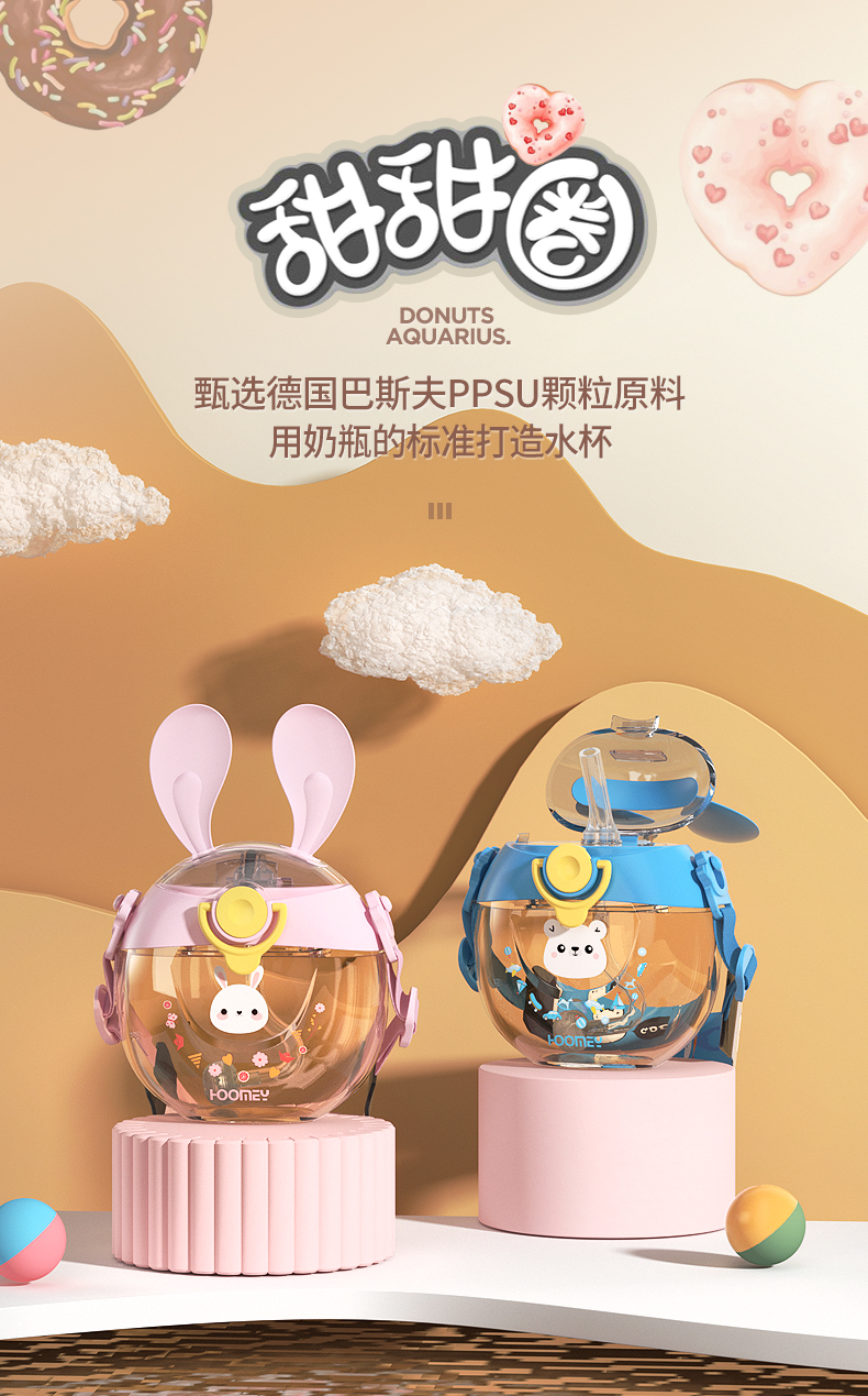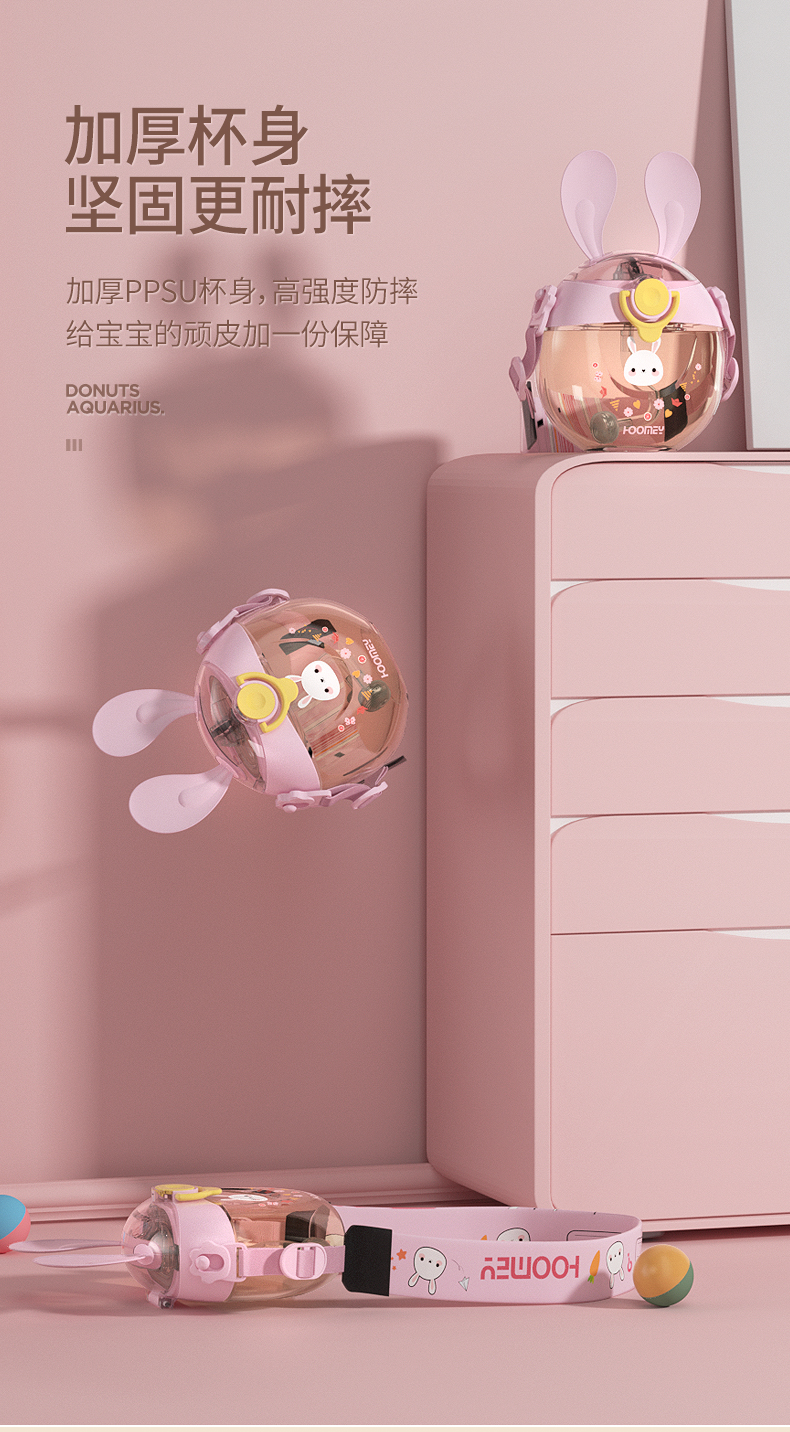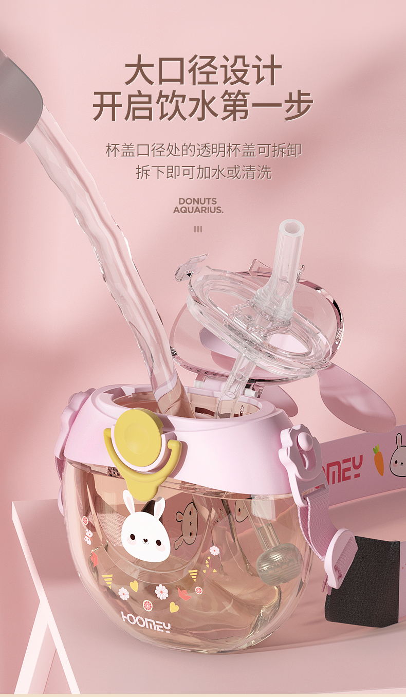 商品名称:儿童吸管杯甜甜圈水杯子ppsu夏季仙女背带超可爱宝宝上学专用水壶