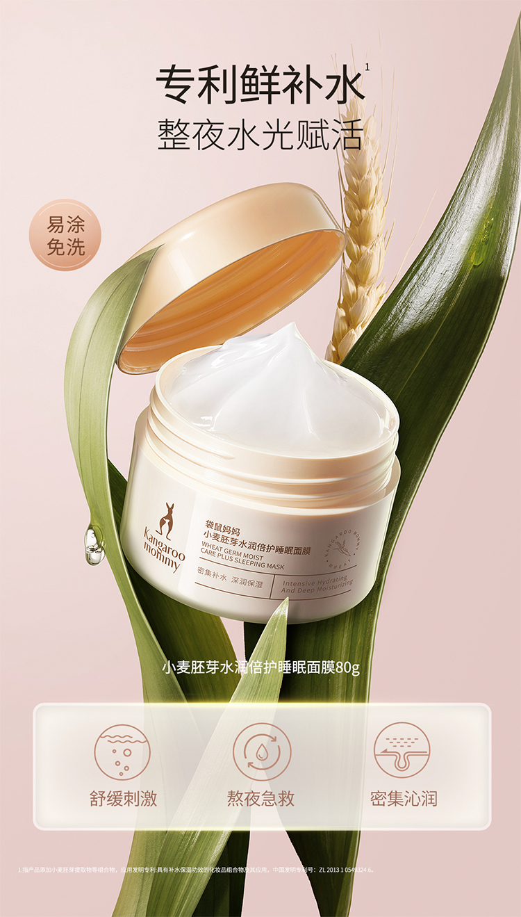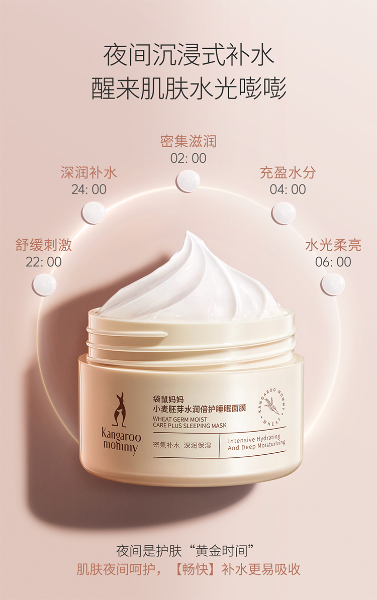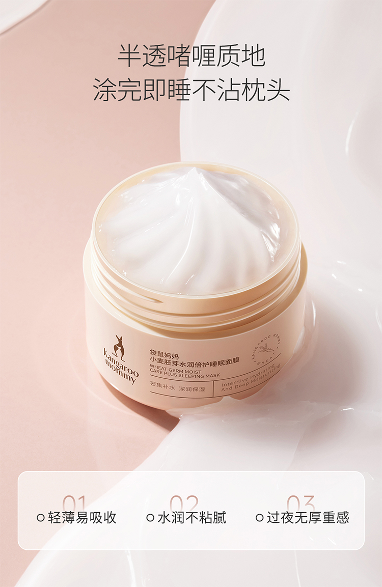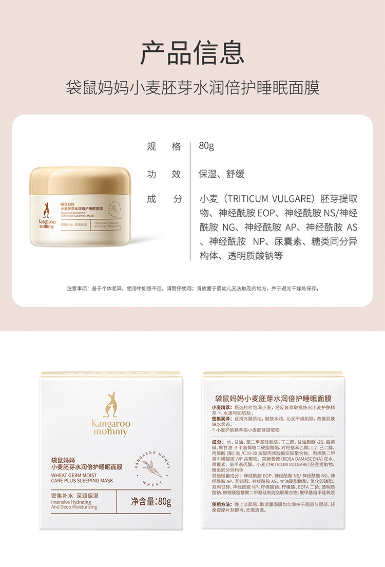 商品名称:袋鼠妈妈小麦睡眠面膜准孕妇面膜准孕妇护肤品补水保湿焕亮补水懒人免洗面膜多肤质80g