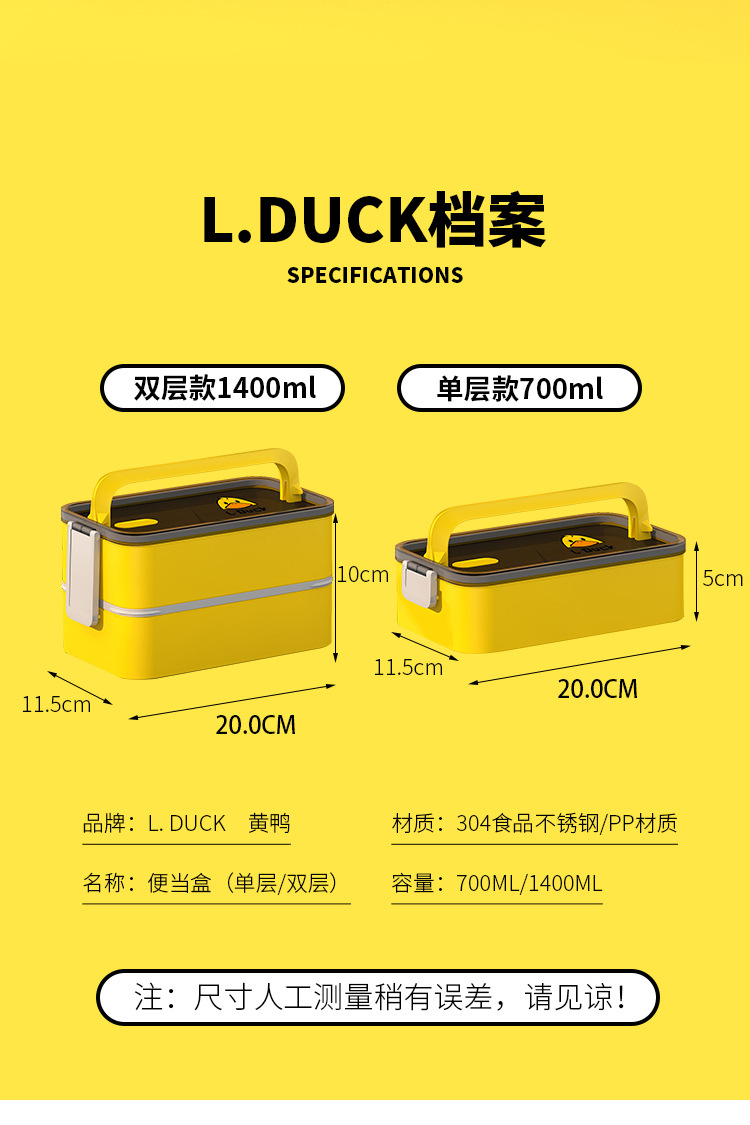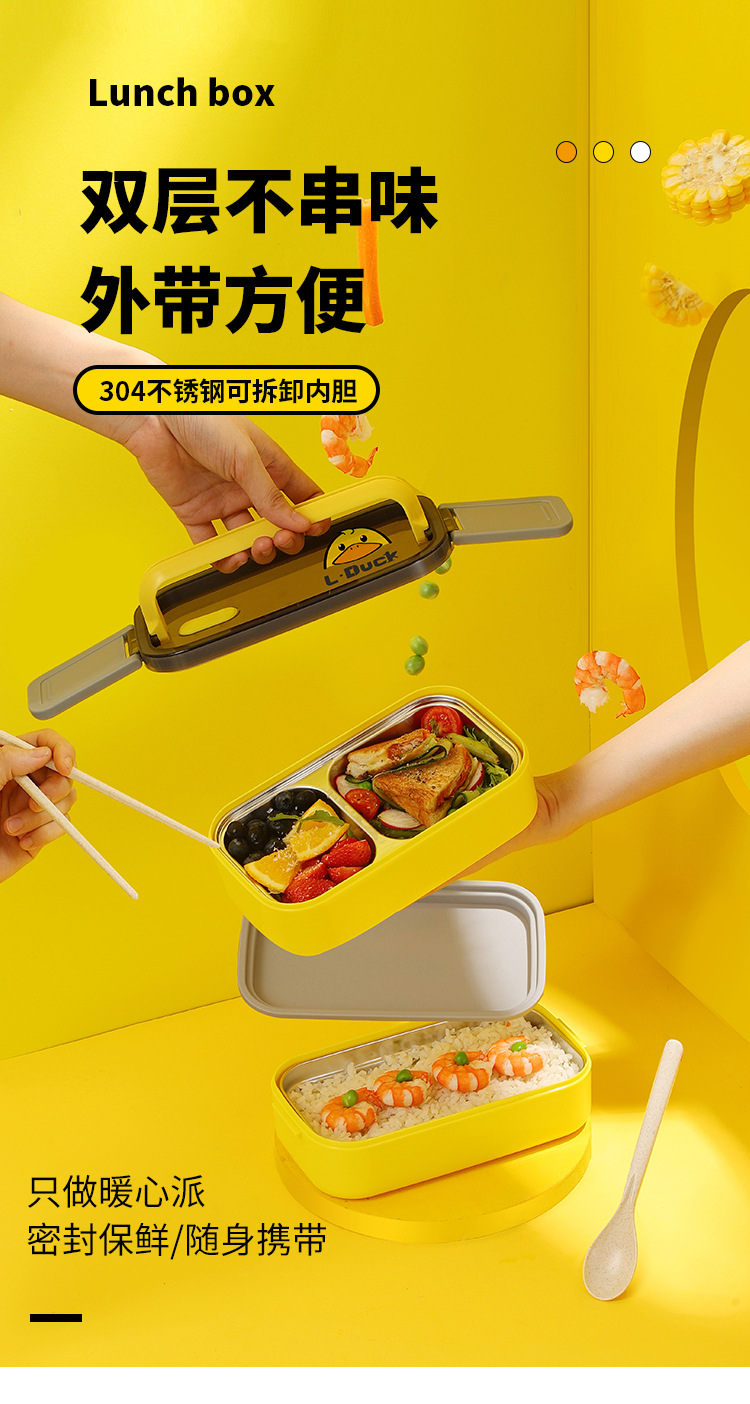 商品名称:L.DUCK小黄鸭联名饭盒上班族可微波加热便携学生保温分格304不锈钢便当盒饭盒便当