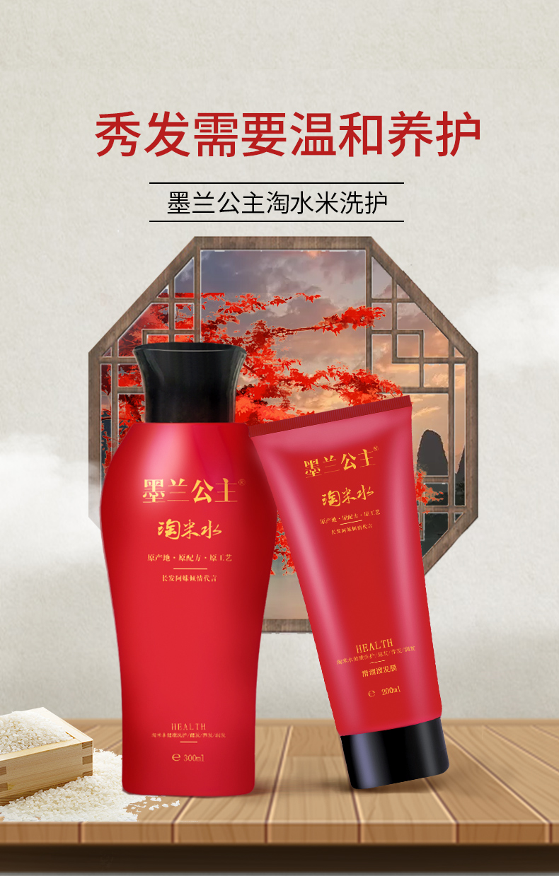 商品名称:【爆款】墨兰公主淘米水洗护套装去屑防脱控油无硅油止痒300ml+200ml