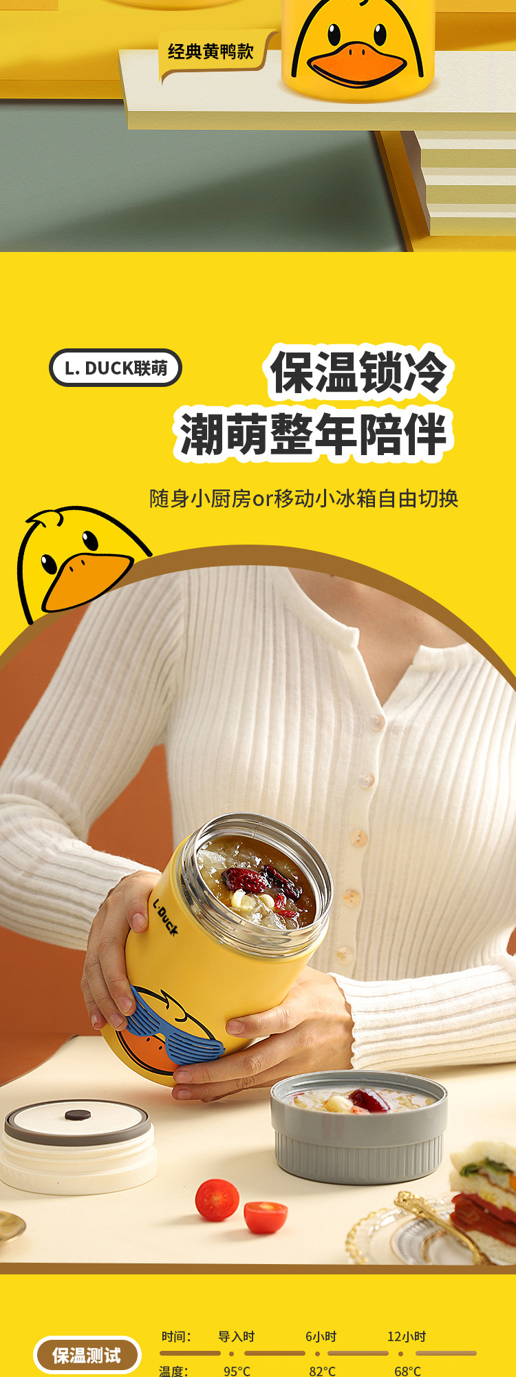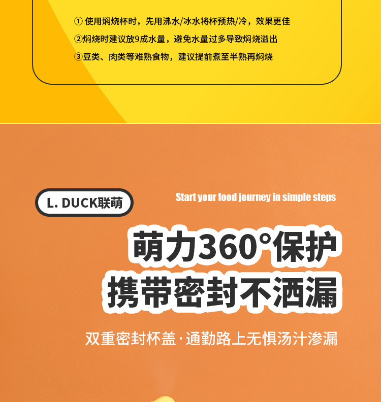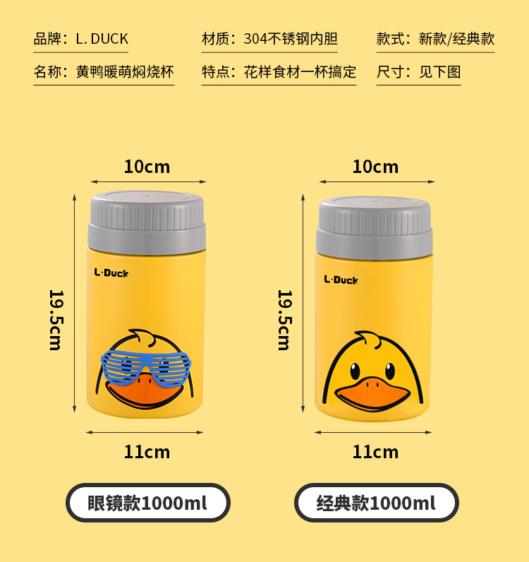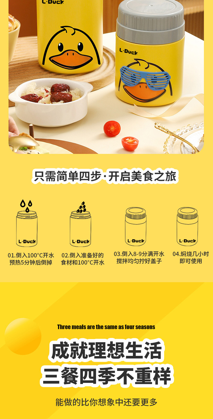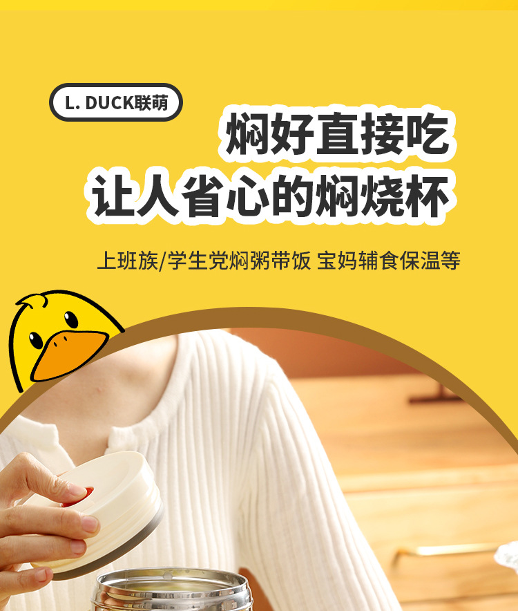 商品名称:L.DUCK小黄鸭联名焖烧杯超长保温12h焖粥焖银耳学生上班族早餐膳食焖烧壶便当保温桶