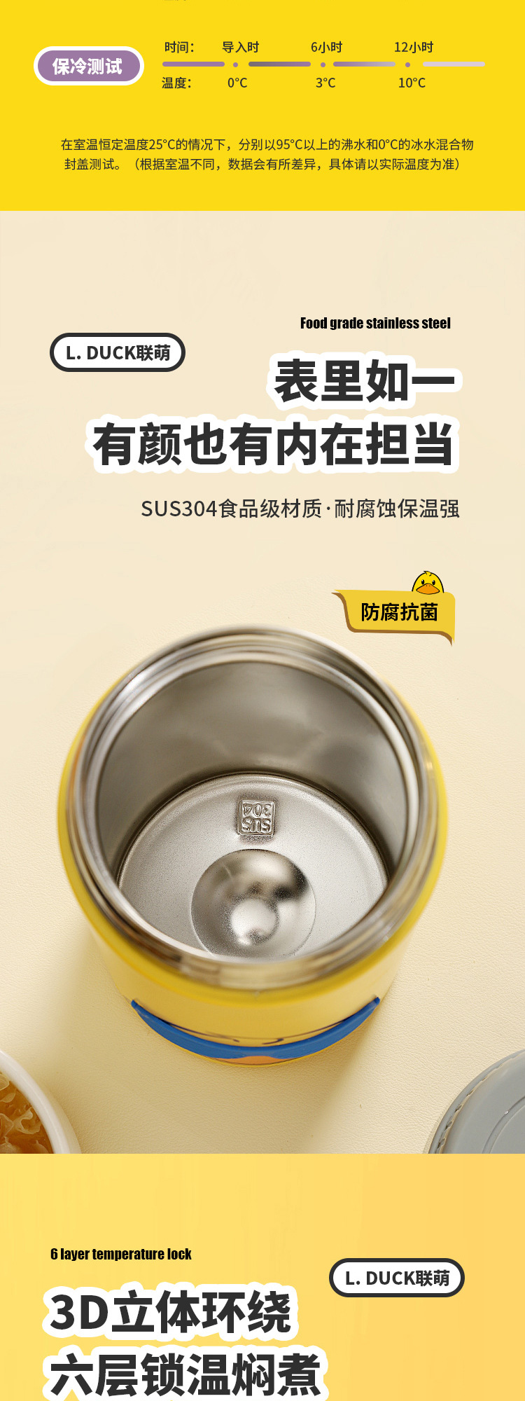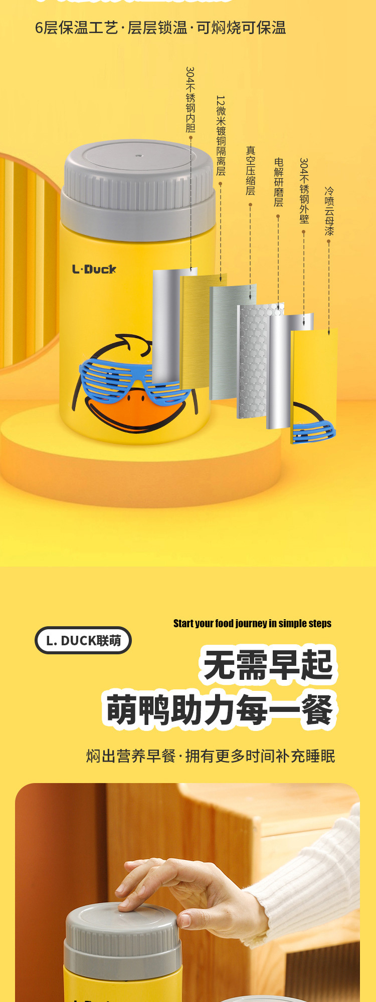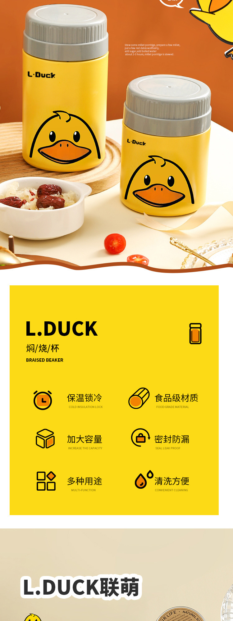 商品名称:L.DUCK小黄鸭联名焖烧杯超长保温12h焖粥焖银耳学生上班族早餐膳食焖烧壶便当保温桶