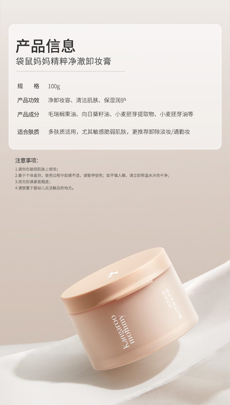 商品名称:【卸妆不闷痘】袋鼠妈妈准孕妇可用清洁卸妆膏卸妆油水乳敏感肌专用彩妆化妆品100g