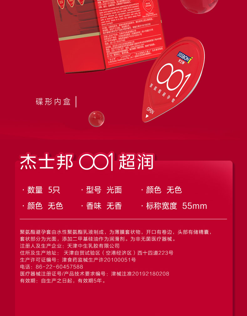 商品名称:【杰士邦001】避孕套超润安全套超薄裸入男女专用持久套套5只tt