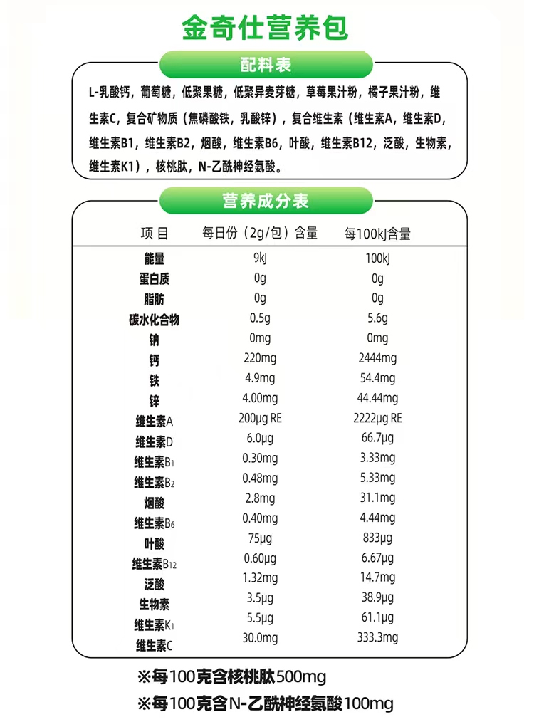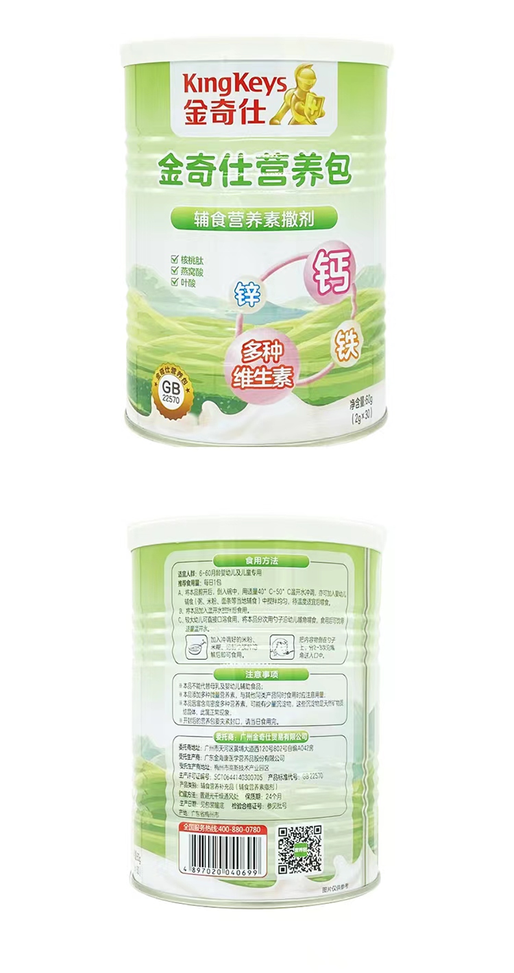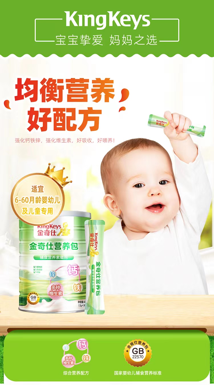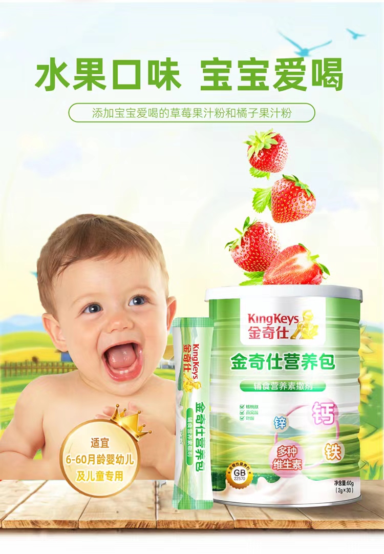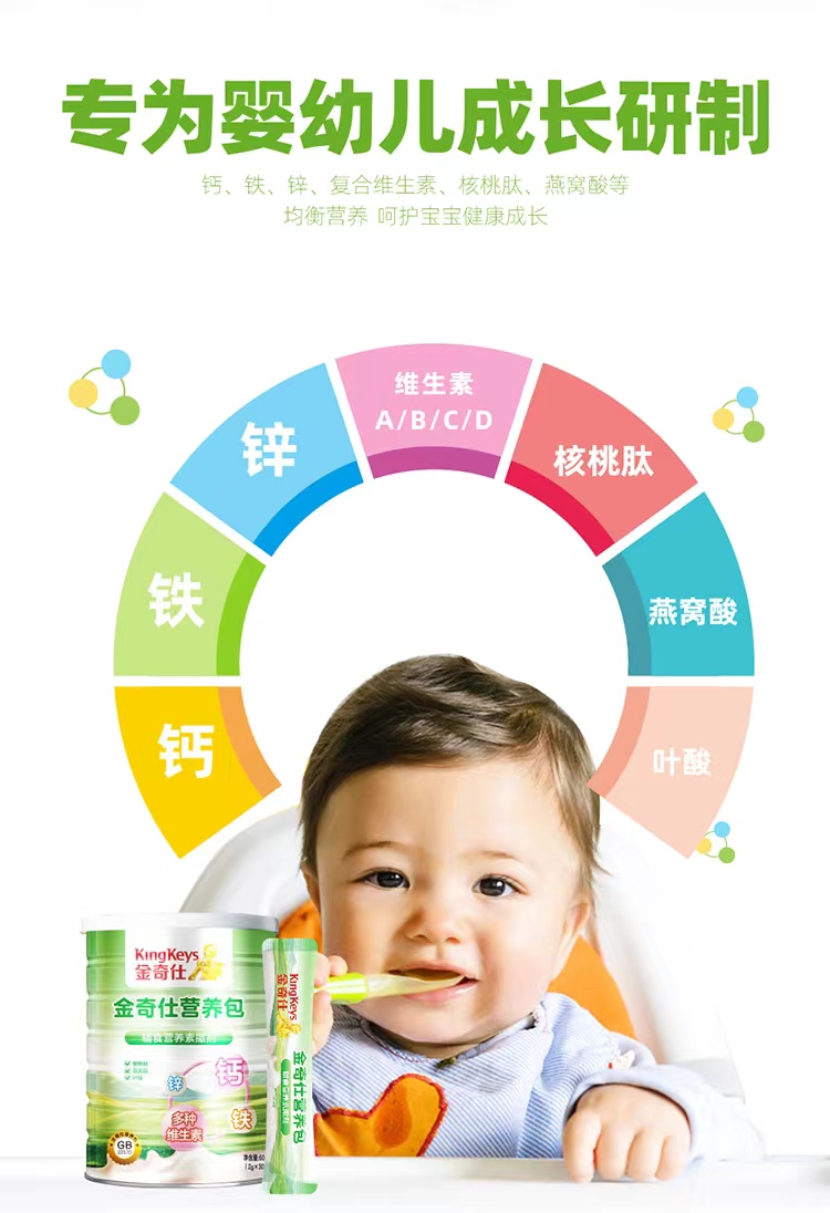 商品名称:【新货】金奇仕钙铁锌婴幼儿童营养包60g 补充多种维生素钙铁锌营养包