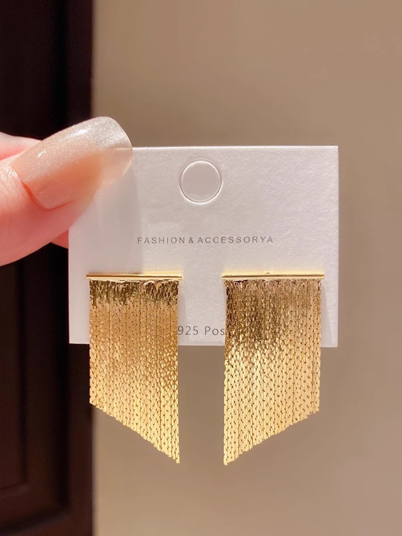 彤彤兔 S925银针高级感金属冷淡风气质流苏耳环女小众设计感复古耳钉耳饰