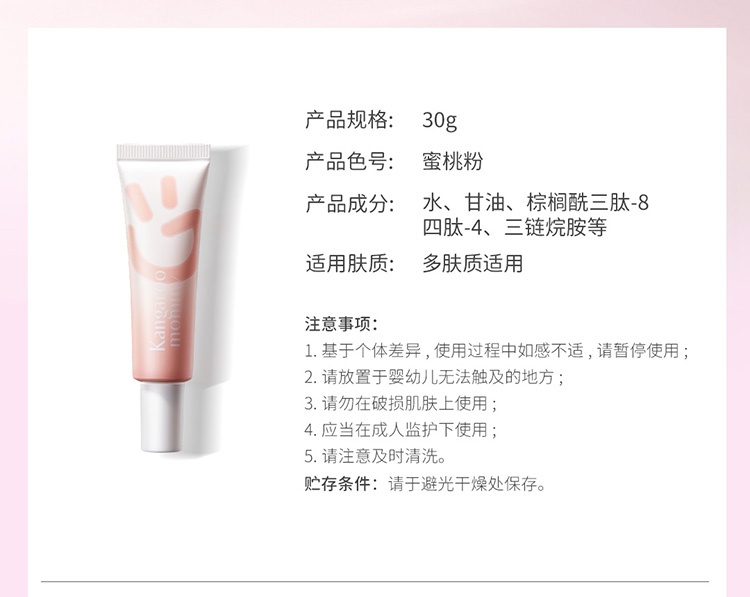 商品名称:【青少年CC霜】袋鼠妈妈青少年隔离霜素颜霜保湿儿童提亮气色隔离底妆二合一不闷痘30g