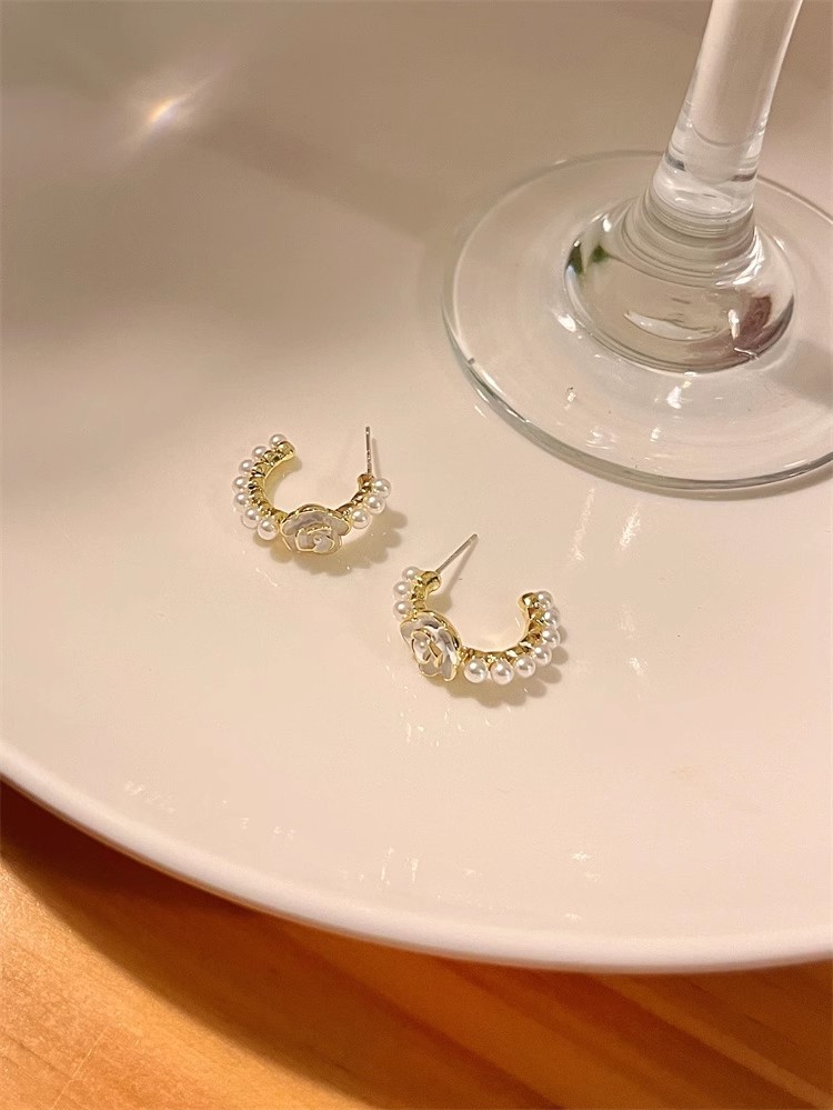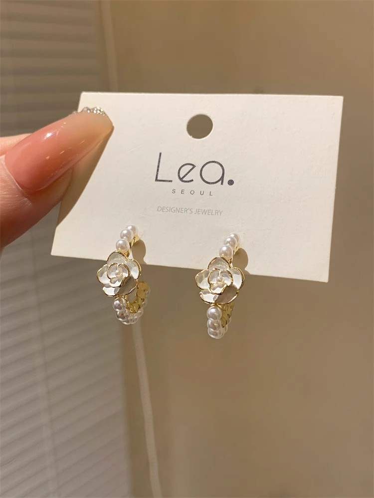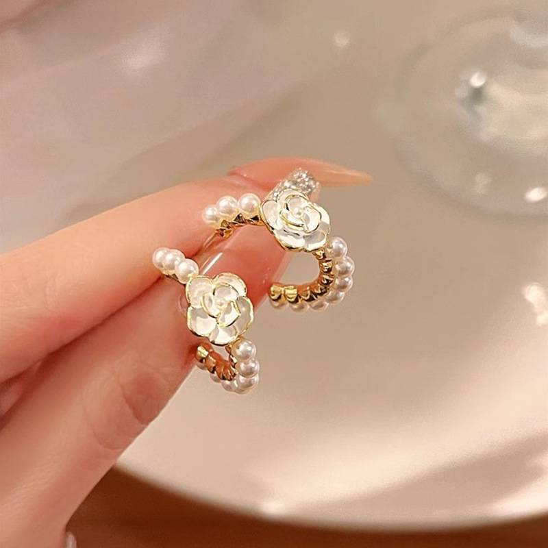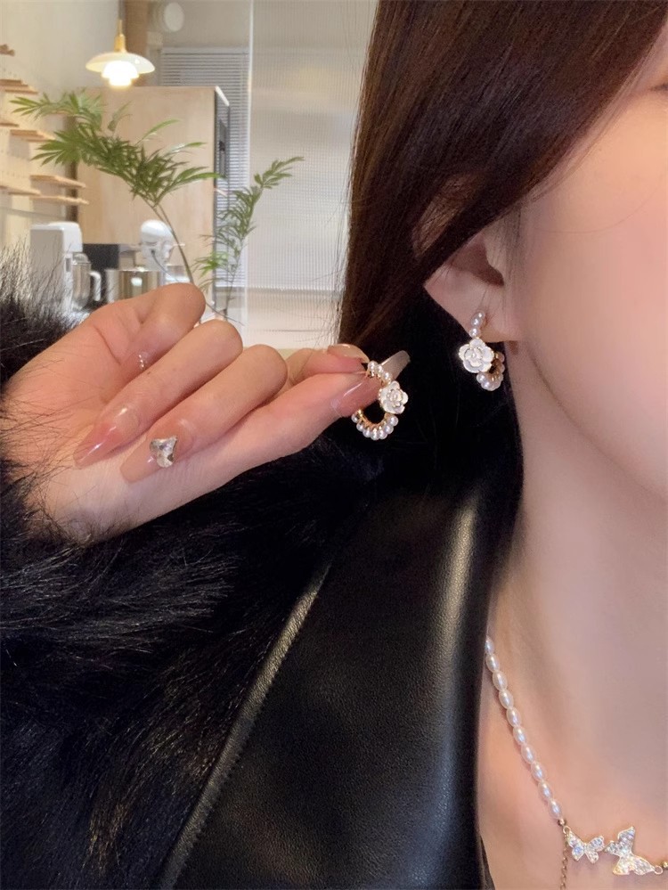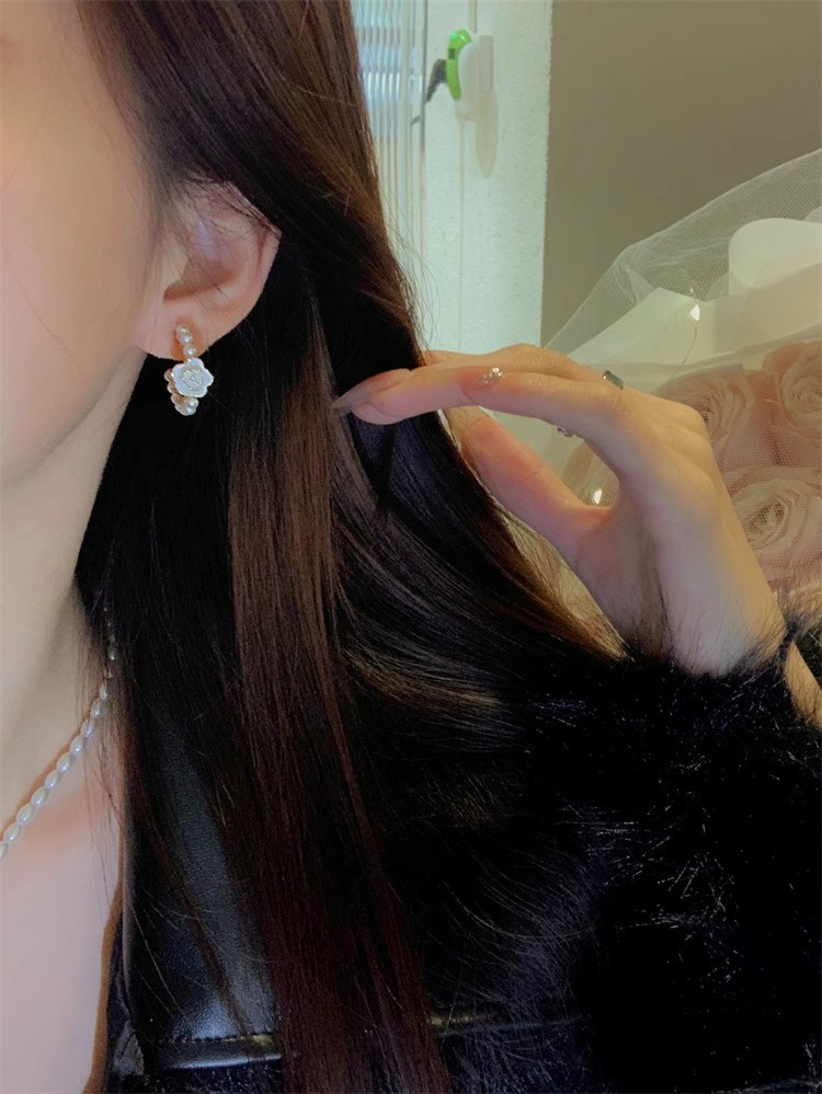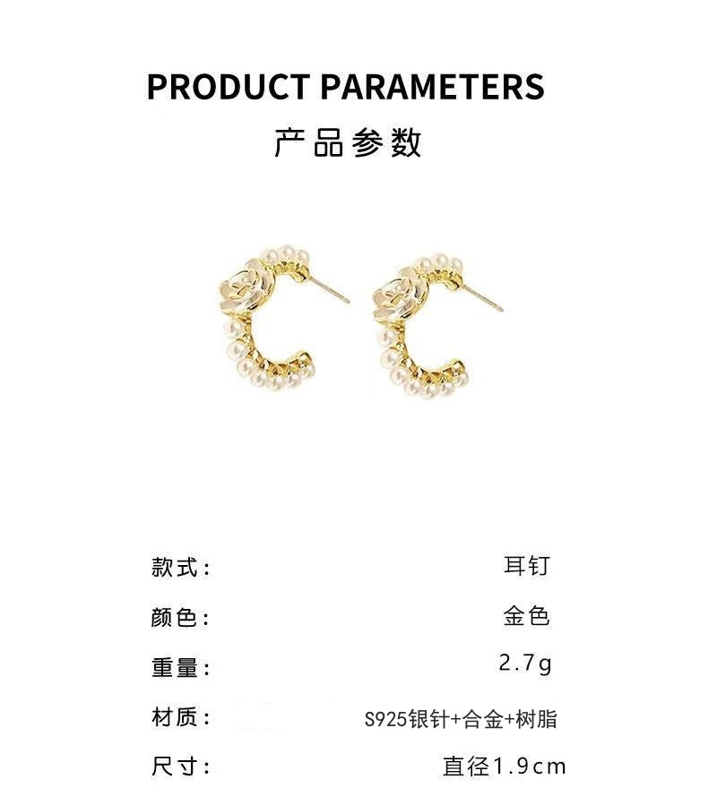 商品名称:彤彤兔 S925银针山茶花珍珠耳环小众设计感高级新款潮耳饰耳钉
