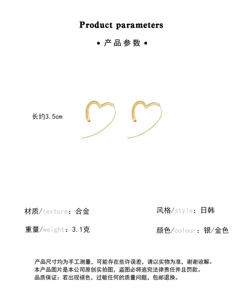 商品名称:彤彤兔 简约冷淡风爱心耳环女时尚气质百搭小众设计感耳钉心形耳饰品