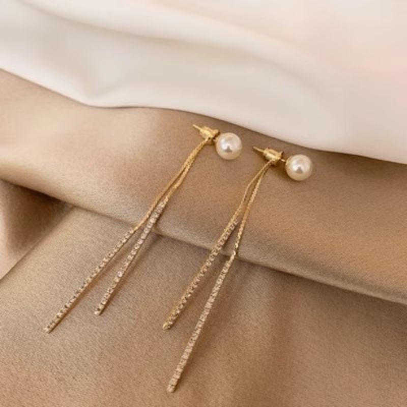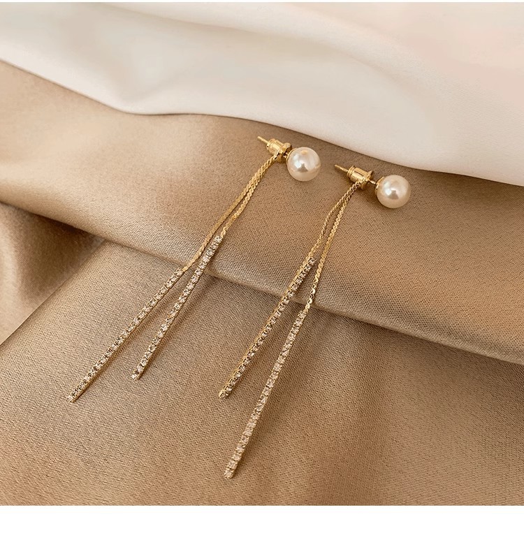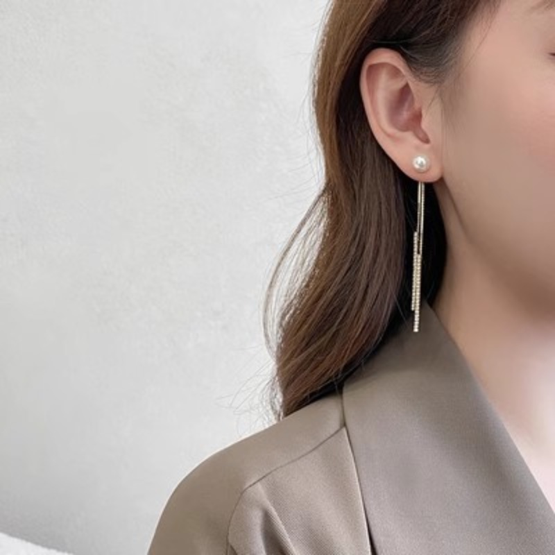 商品名称:彤彤兔 s925银针珍珠镶钻流苏长款耳环气质冷淡风韩国耳饰简约耳坠女神范