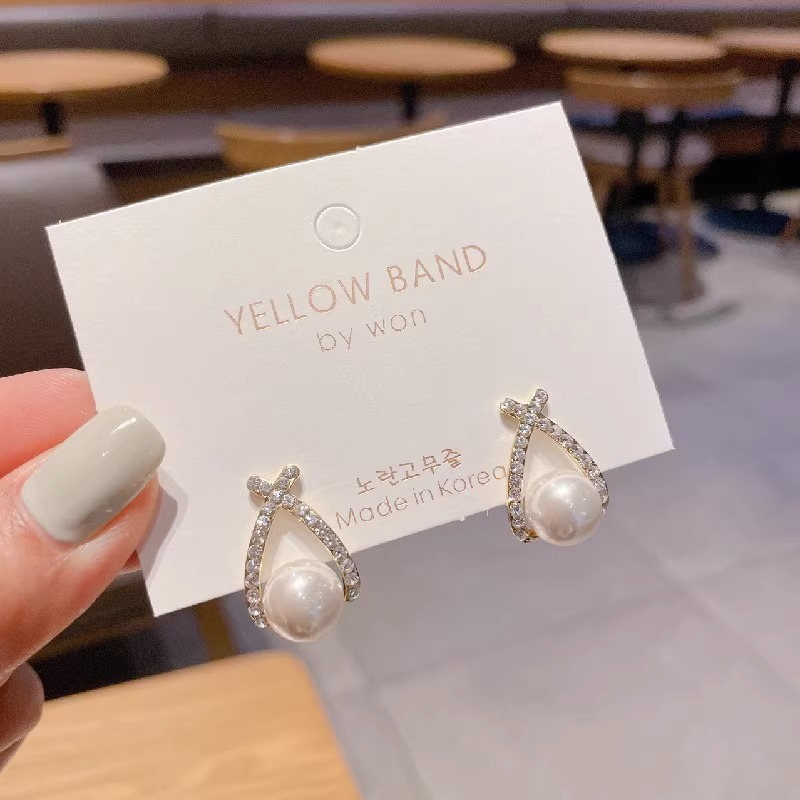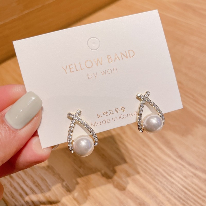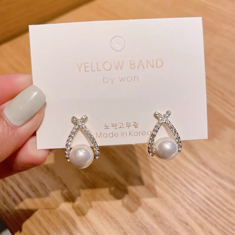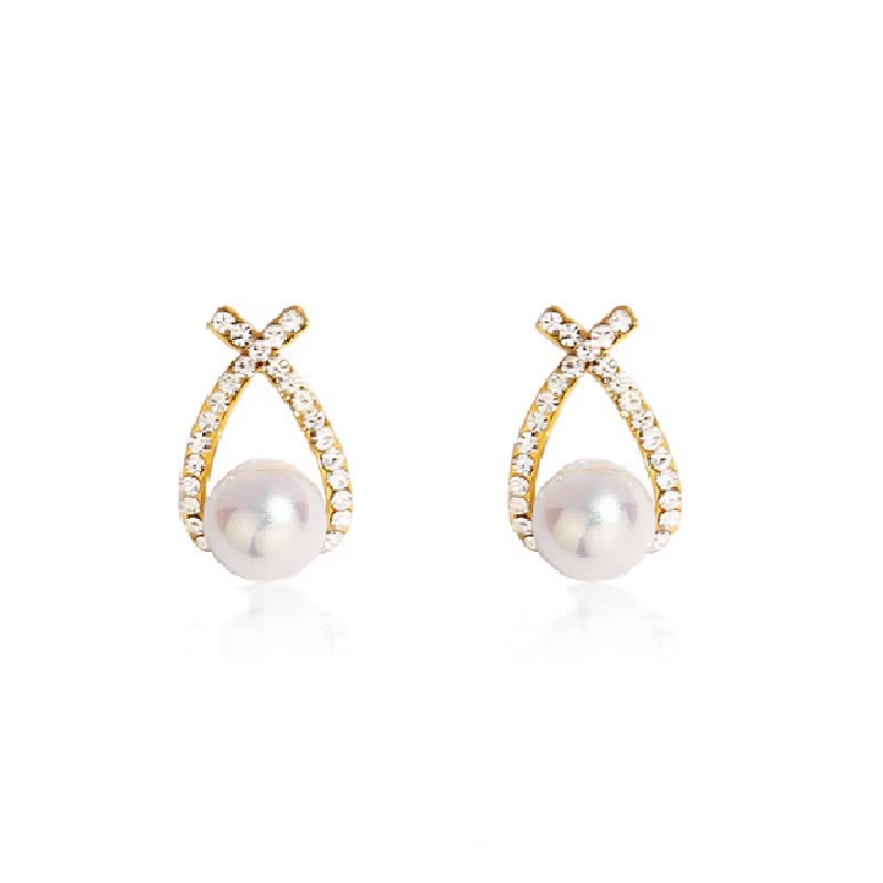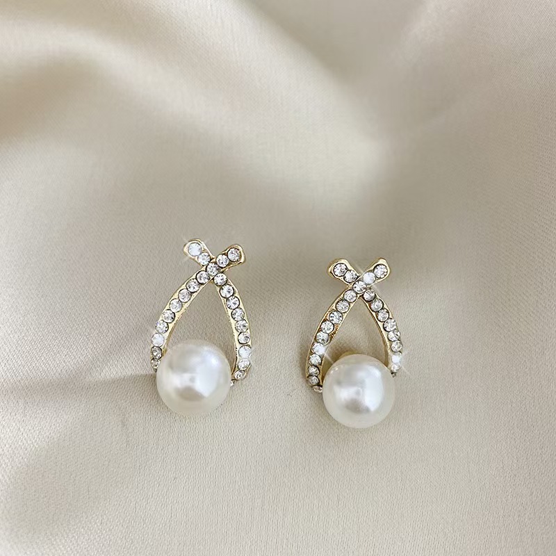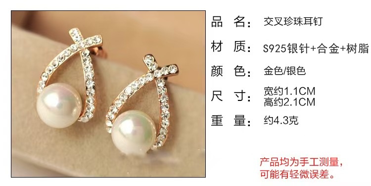 商品名称:彤彤兔 S925银针韩版简约气质小众个性满钻交叉珍珠款耳钉女耳环