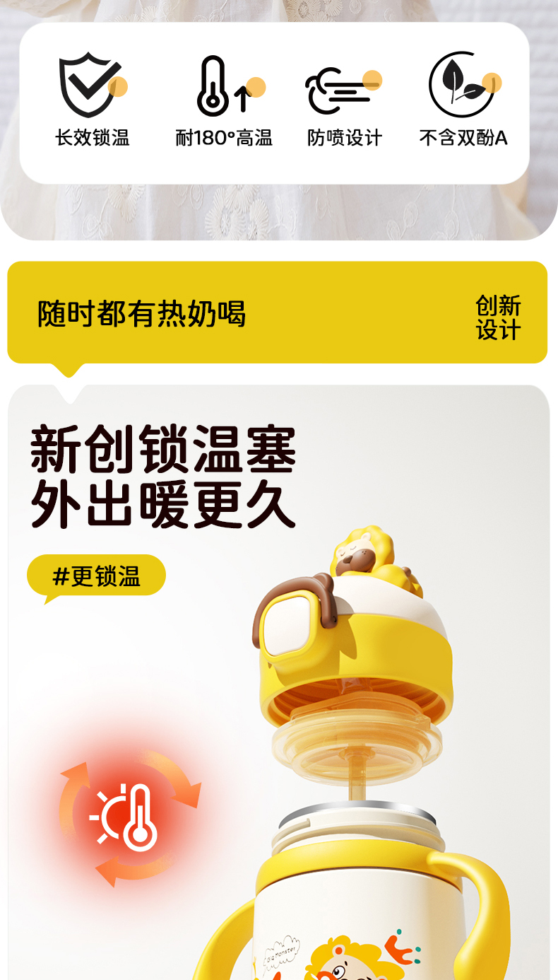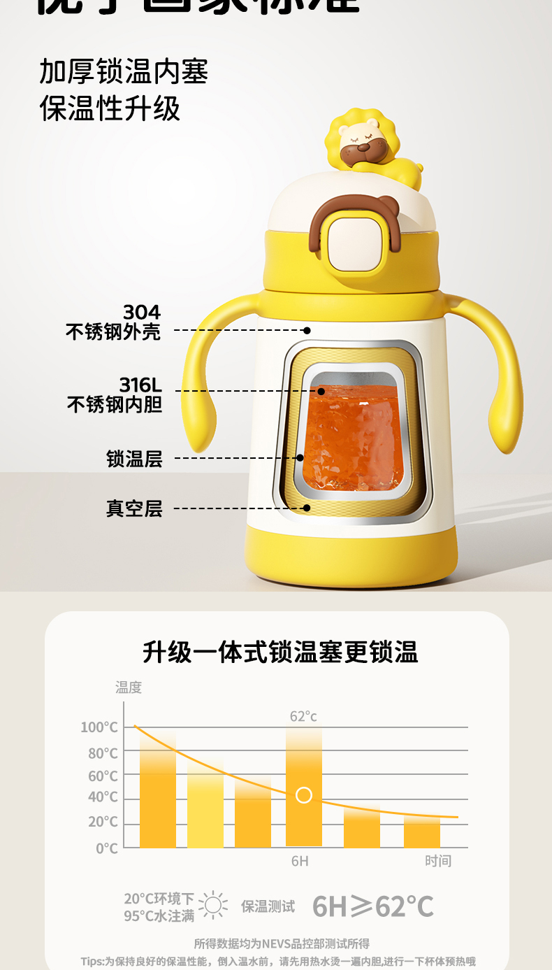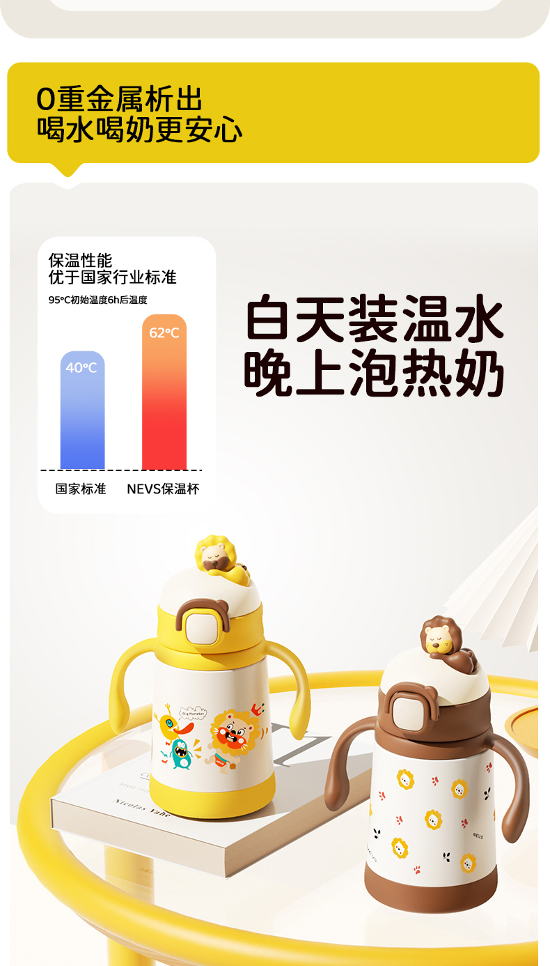 商品名称:【新品保温杯】NEVS/尼维森宝宝直饮吸管保温杯喝奶喝水316L不锈钢