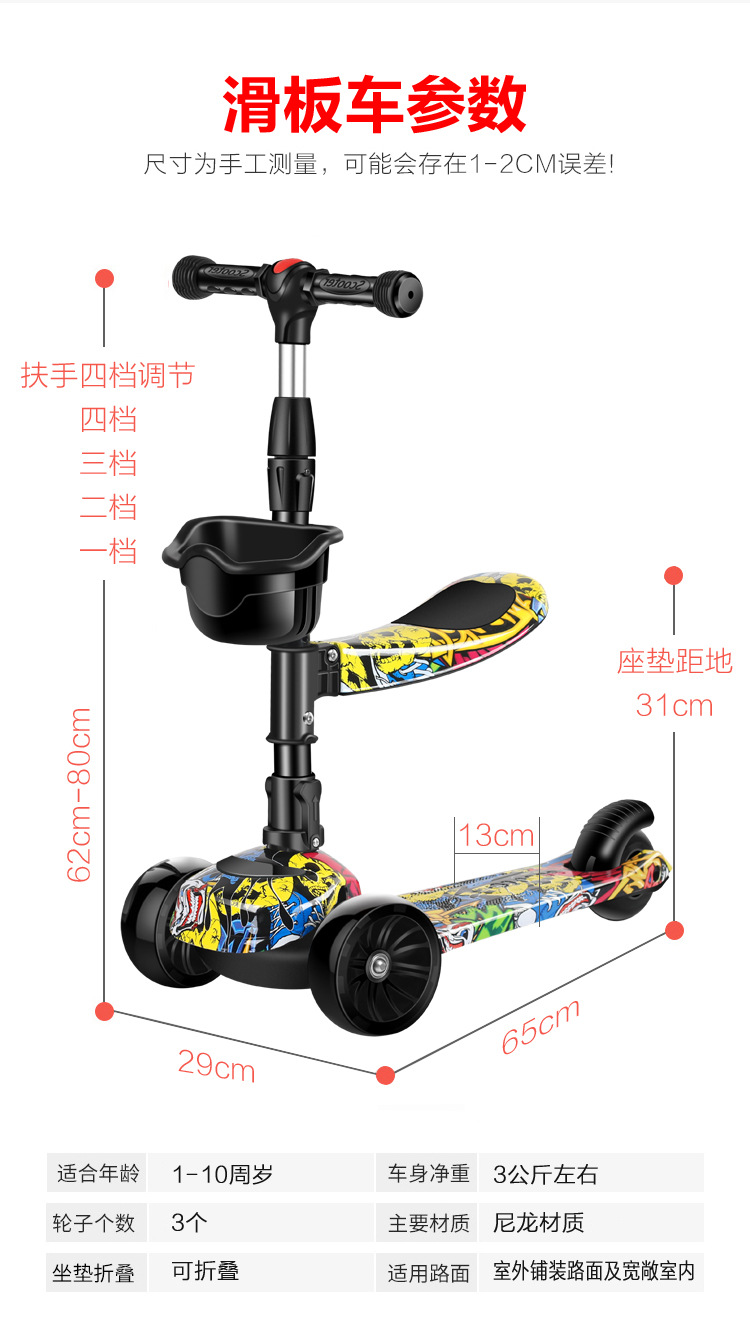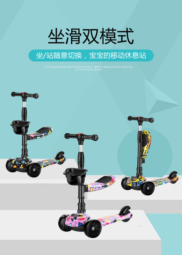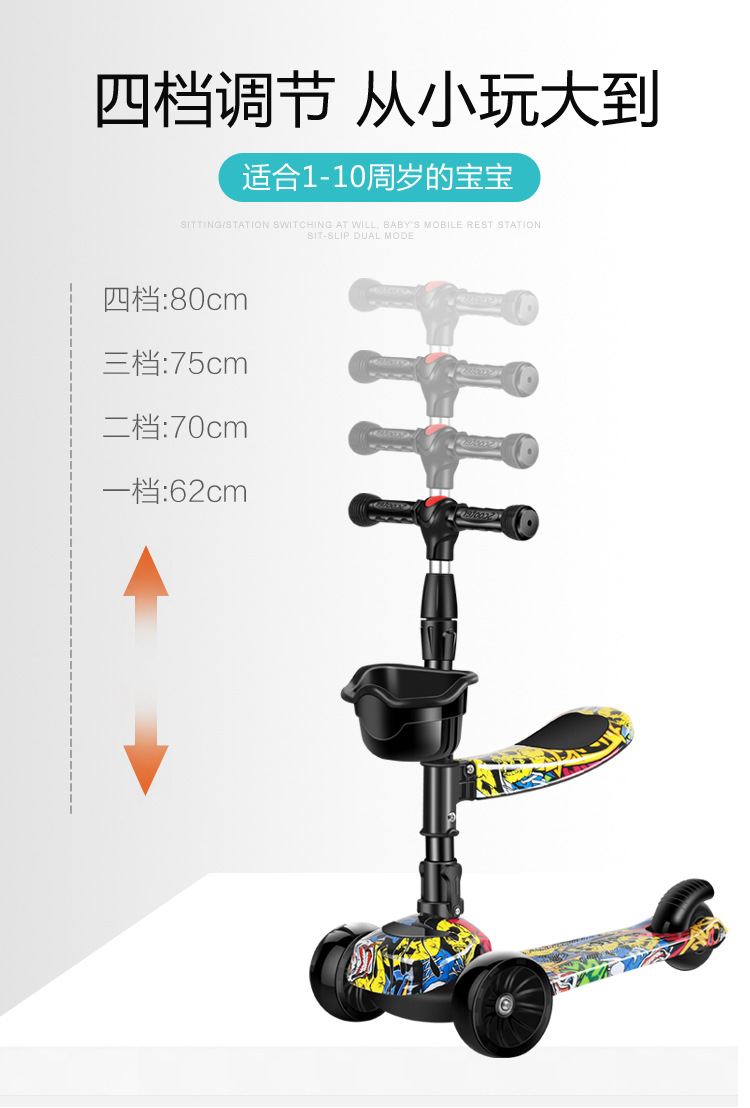 商品名称:京乐贝比滑板车儿童三合一米高溜溜车三轮滑滑车童车扭扭车玩具车滑行车