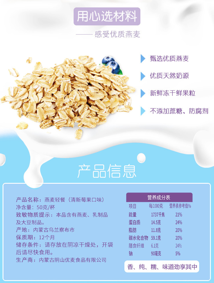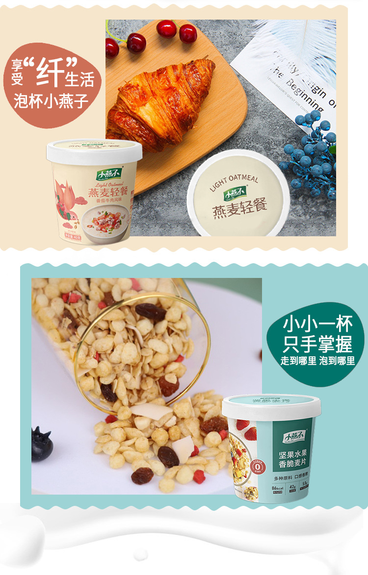 商品名称:小燕子燕麦餐杯轻餐原味红枣莓果番茄牛肉燕麦片50克/杯多口味选择即冲