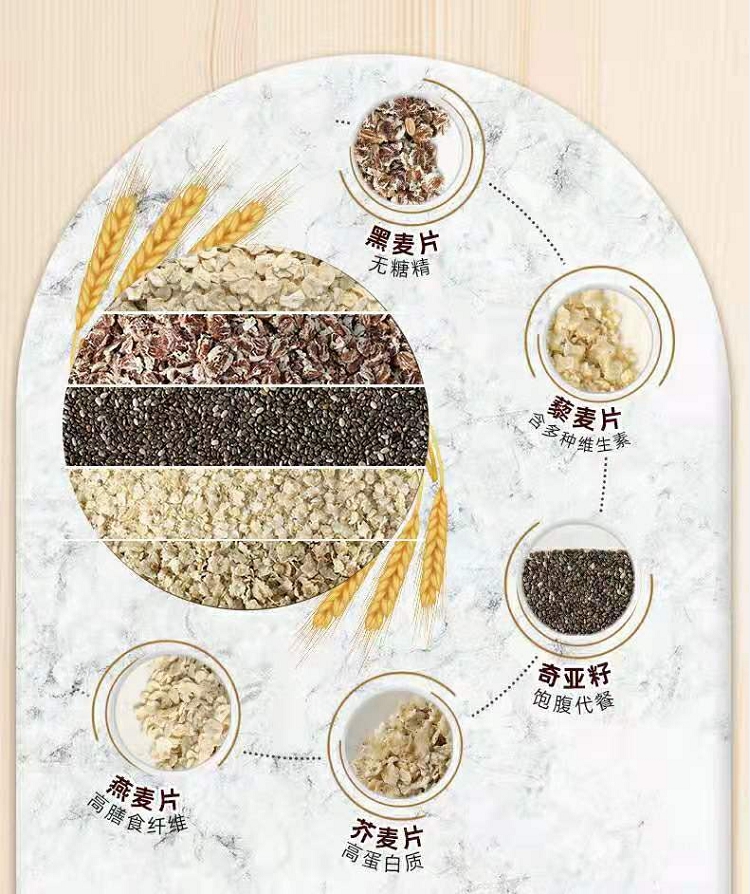 商品名称:金裕皖奇亚籽藜麦混合麦片1000克/罐成人营养代餐燕麦片早餐麦片