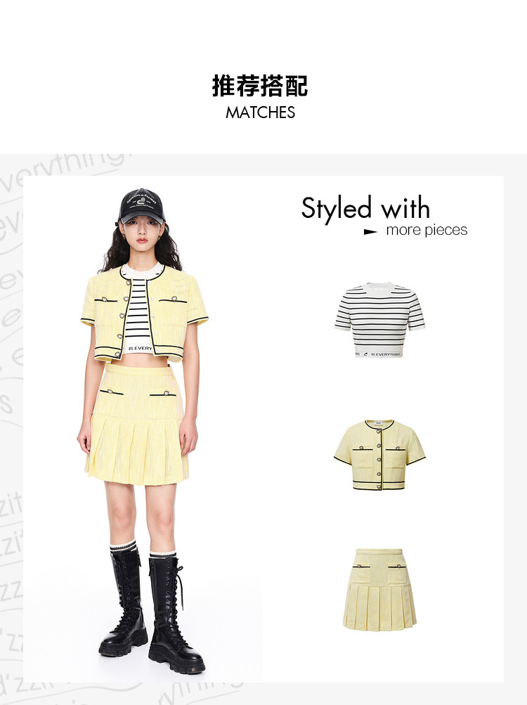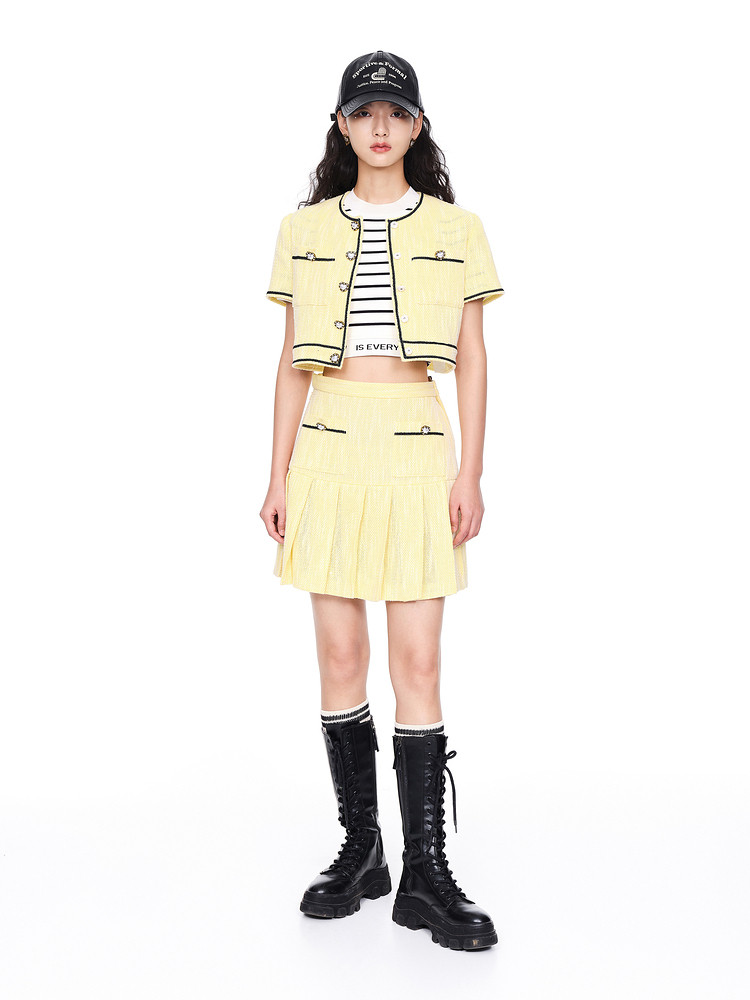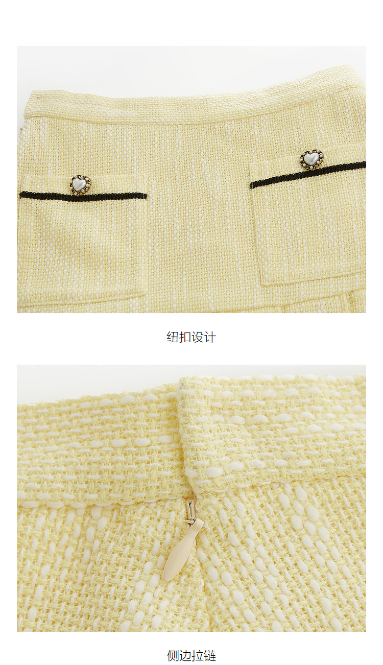 地素春秋季气质粗花呢a字百褶半身短裙 512523