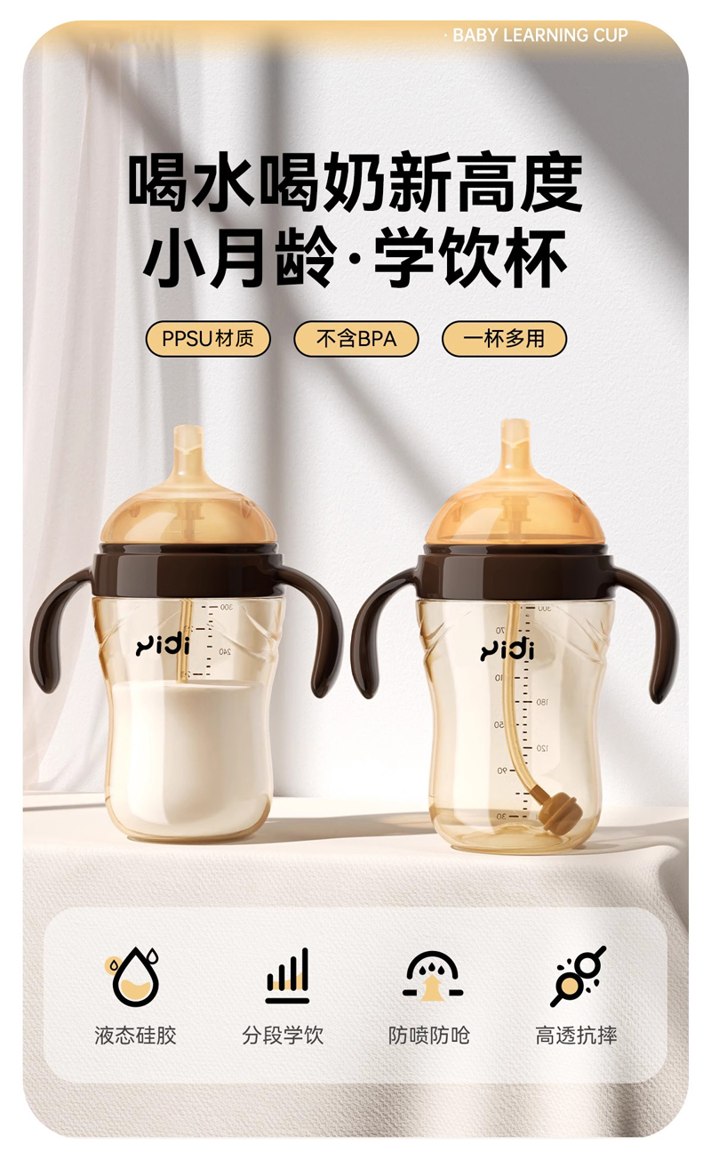 商品名称:【世*喜同款】迪普艾学饮杯鸭嘴杯婴儿6个月以上ppsu喝水杯子重力球吸管杯1岁2岁3岁300ml