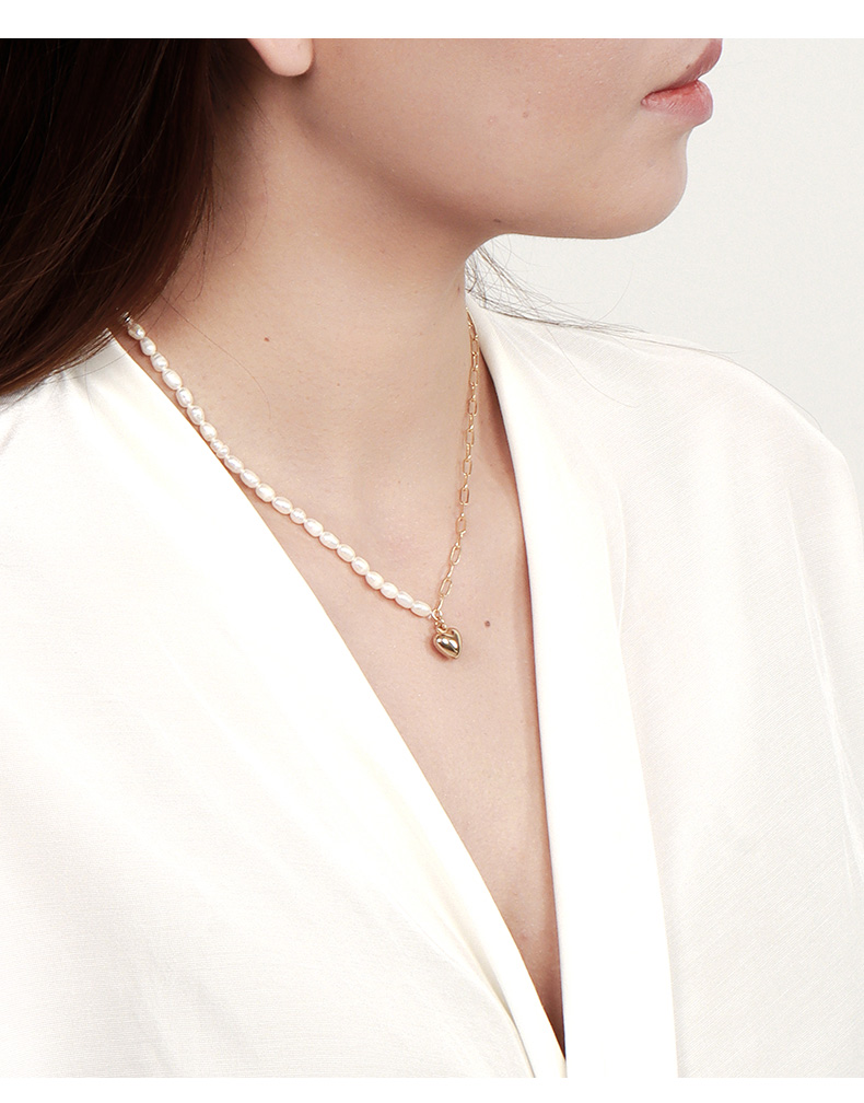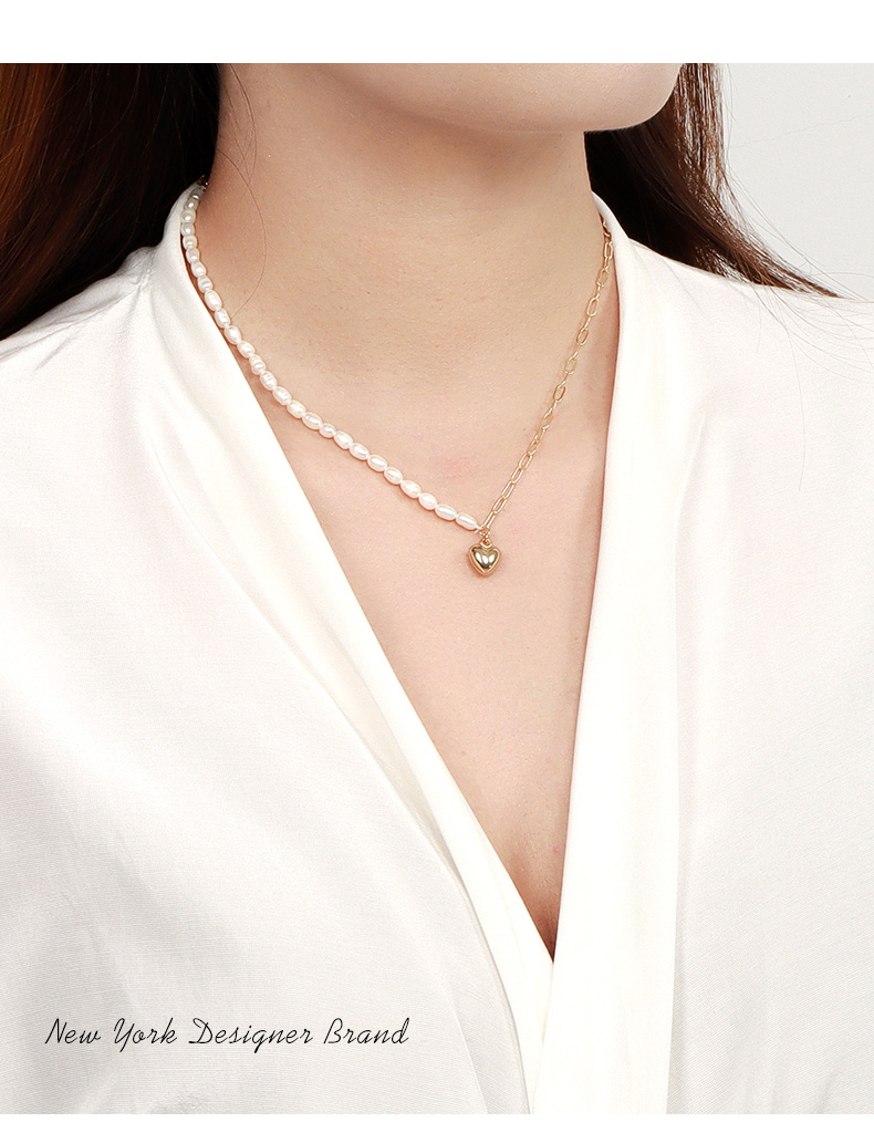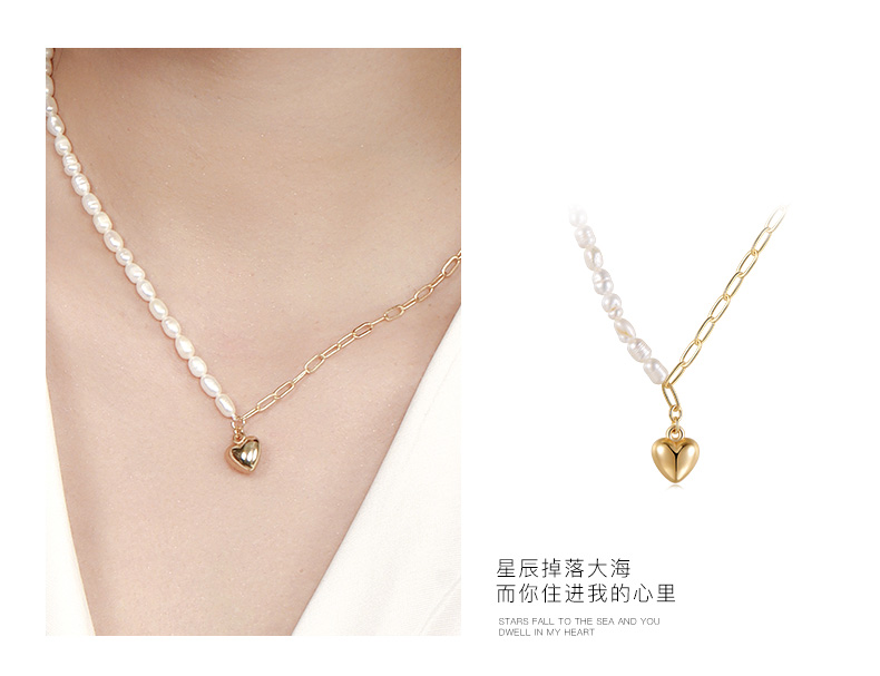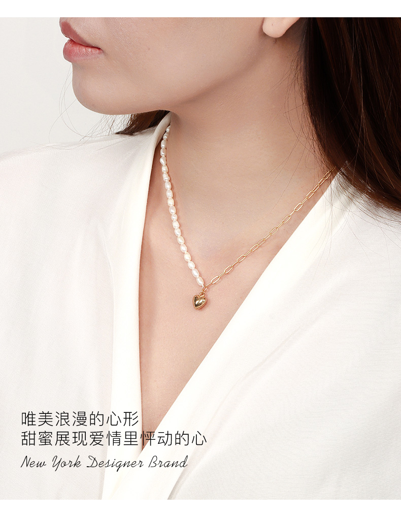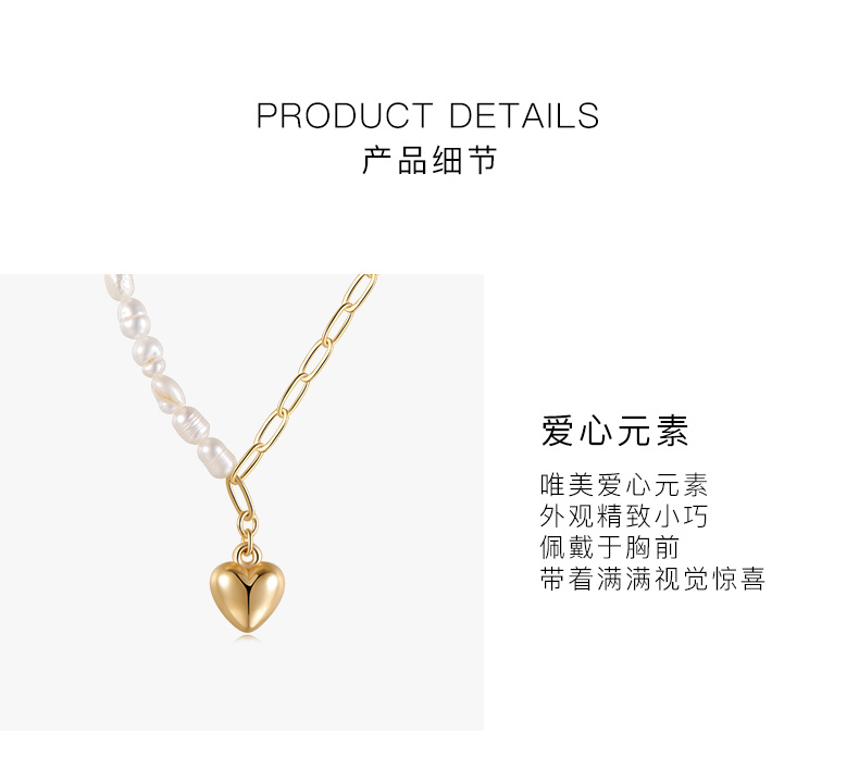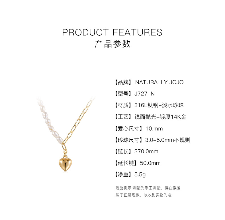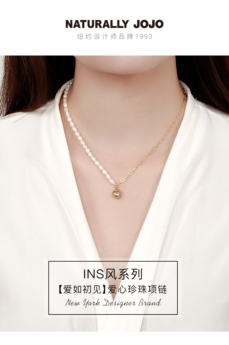 商品名称:NATURALLY JOJO女士爱心珍珠AB款钛钢项链女生时尚气质小众高级感心形吊坠锁骨链2023新款