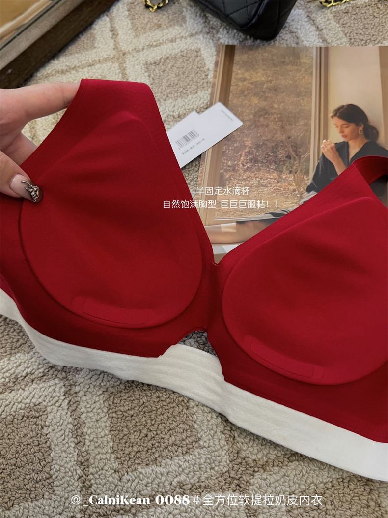 商品名称:万倩软提拉奶皮内衣女小胸聚拢显大固定杯无钢圈无痕大红文胸套装