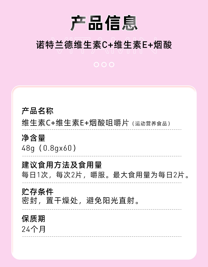 商品名称:诺特兰德维生素c十维生素e十烟酸 维c维e烟酸多维牛磺成人复合多种保健品