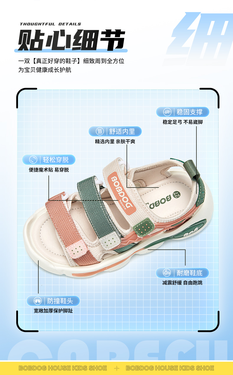 商品名称:【热销爆款】2025夏季新款巴布豆house童鞋男女童防滑凉鞋中大童时尚百搭露趾沙滩鞋