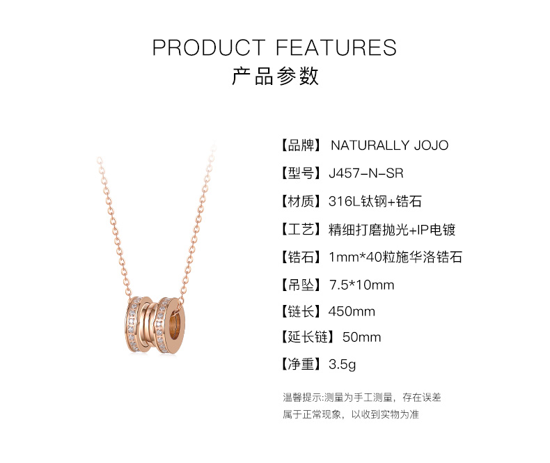 商品名称:NATURALLY JOJO14K满钻小蛮腰项链女生网红轻奢小众钛钢锁骨链简约气质彩金吊坠饰品礼物