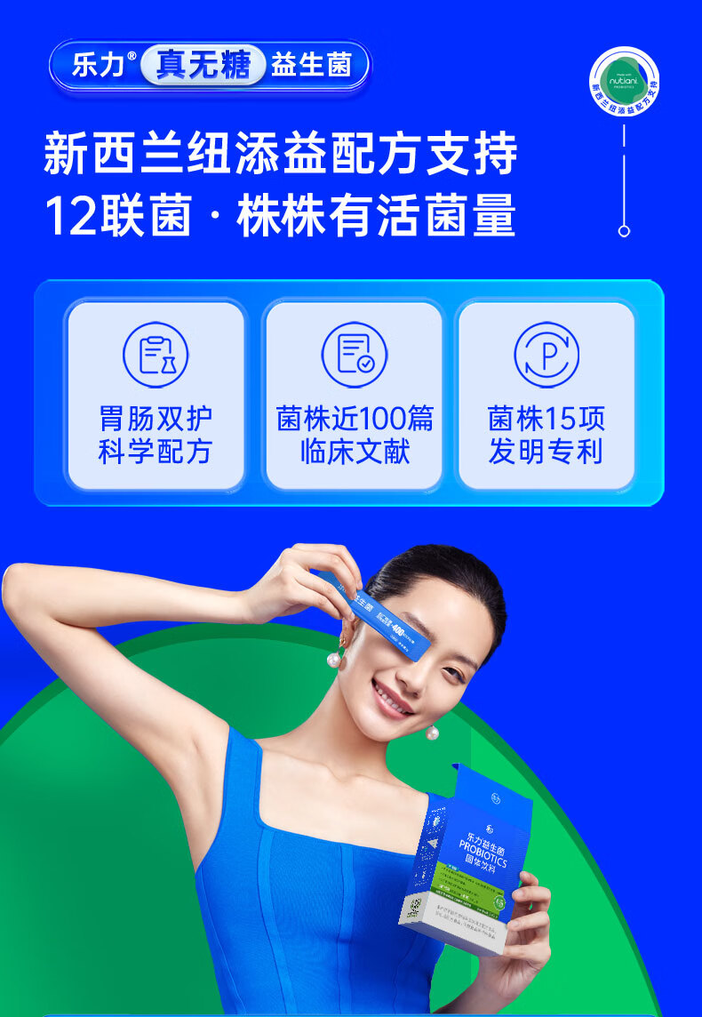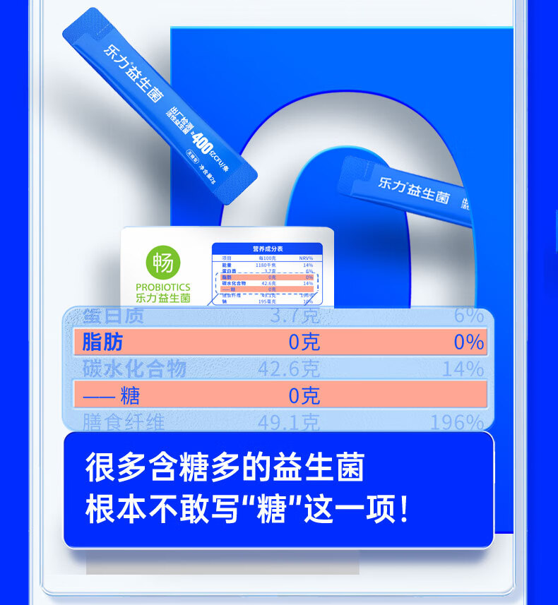 乐力0糖型益生菌8000亿(畅)活菌2g*20条装成人女性儿童孕妇肠胃肠道益生元