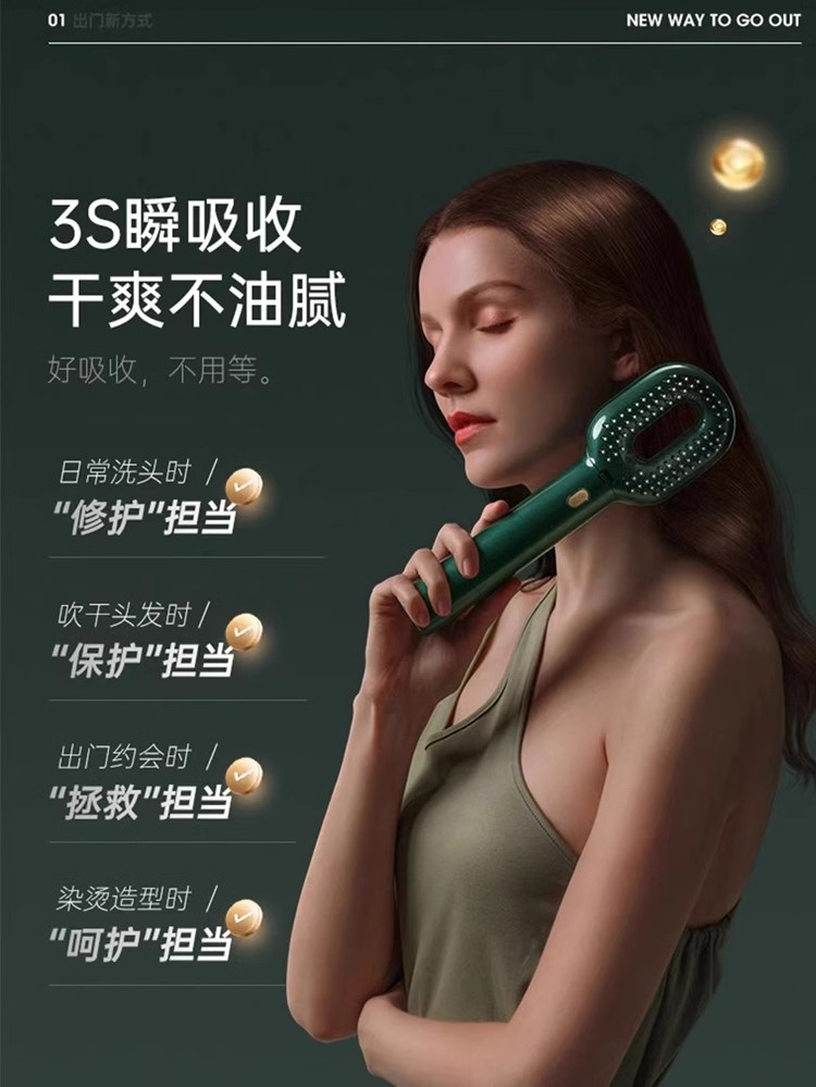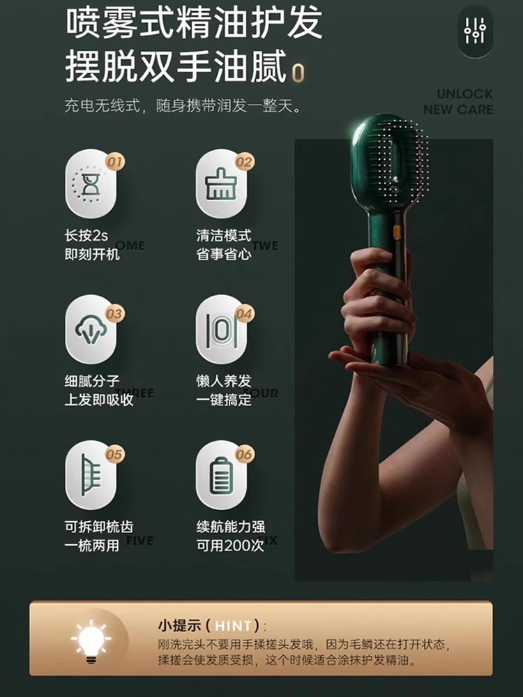 商品名称:【底价清仓不退不换】谷心护发精油梳不伤发两用喷雾导入电动按摩梳柔顺负离子直发梳