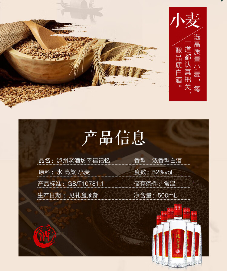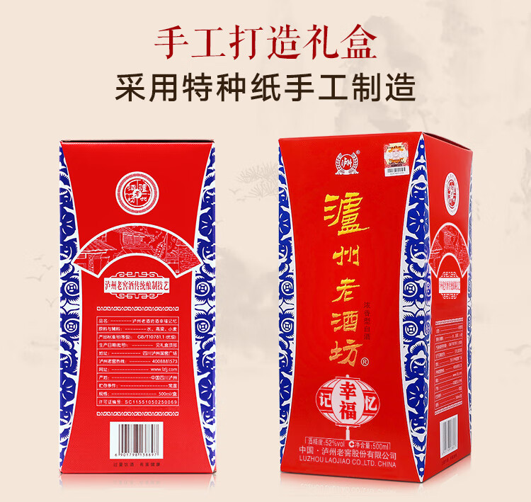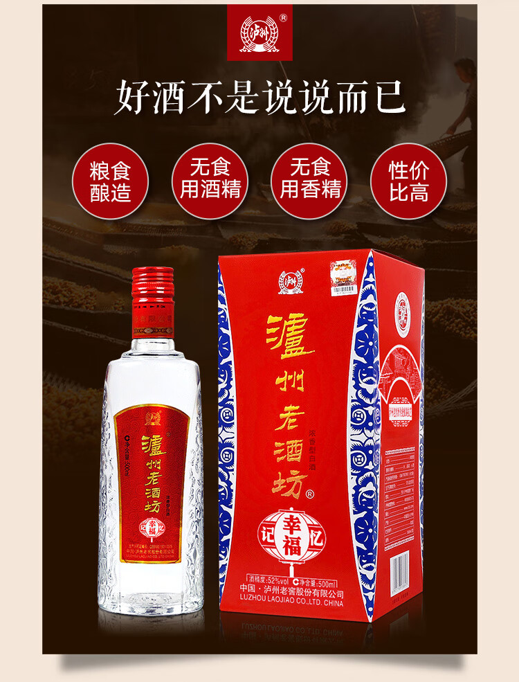 商品名称:【佳节送礼 商务宴请】泸州老窖泸州老酒坊幸福记忆 浓香型白酒 52度 500ml*6瓶整箱