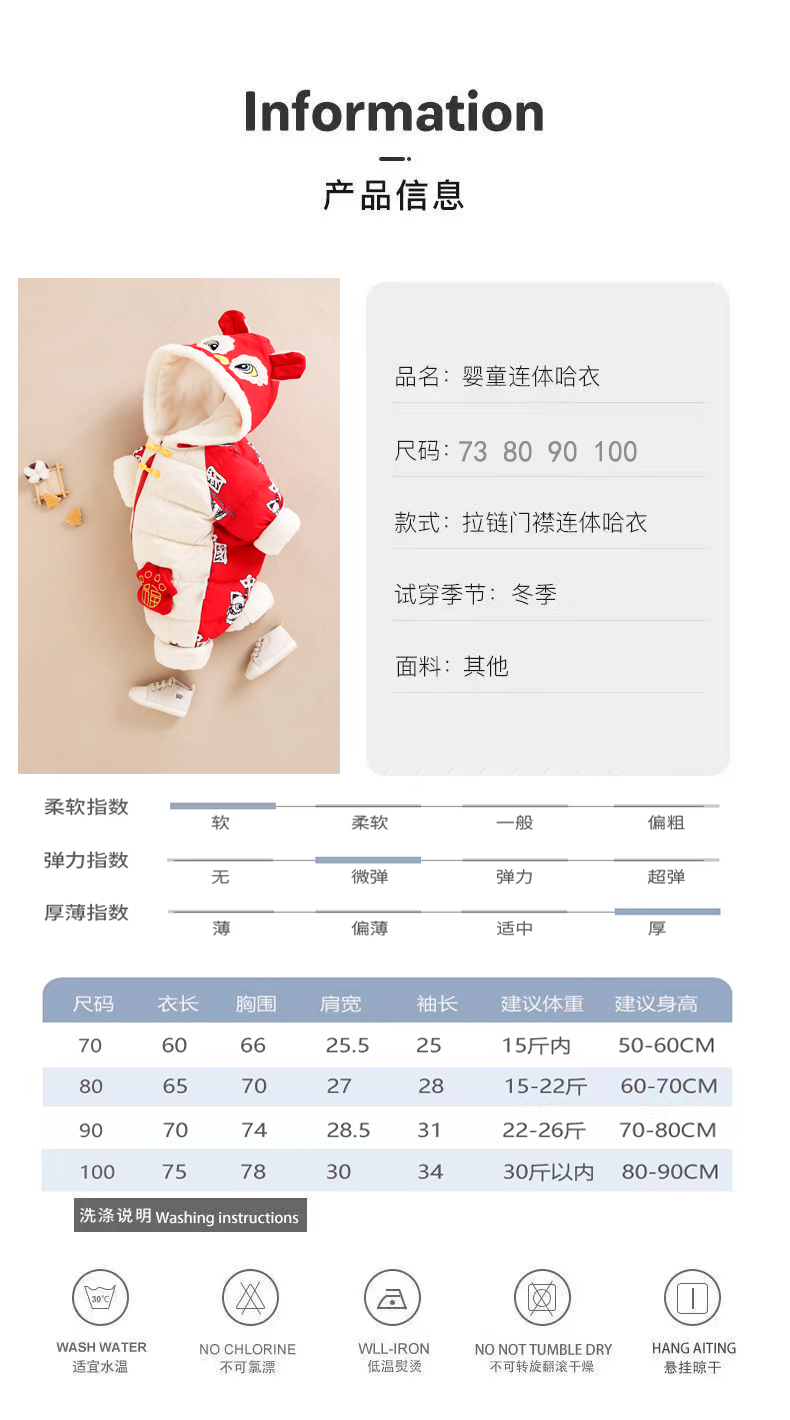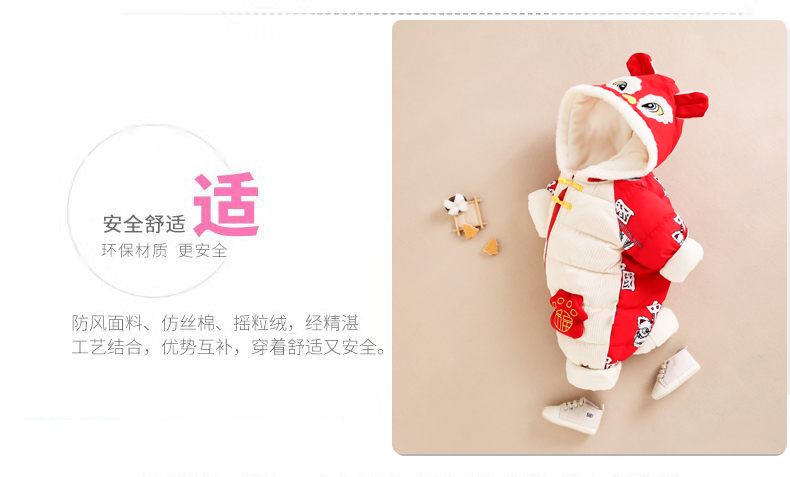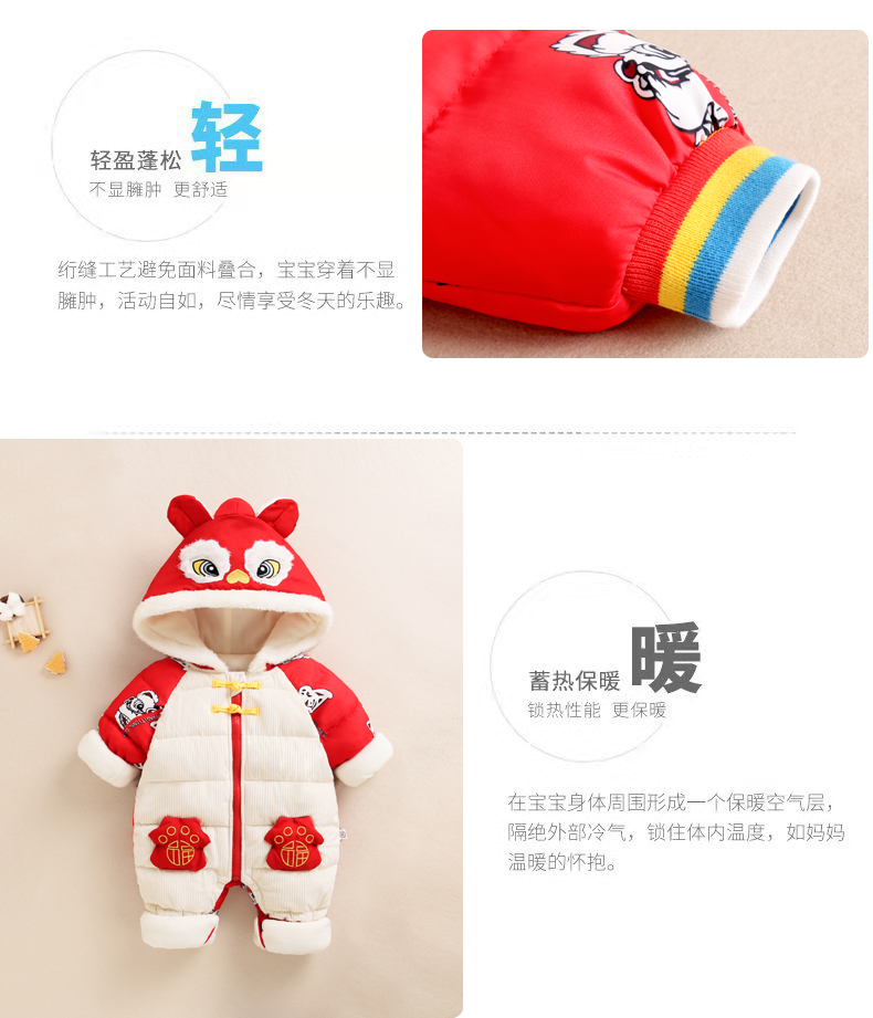 商品名称:百极羽【婴幼儿连体衣】2024新款婴儿连体衣冬季宝宝爬爬棉服儿童羽绒棉外套童装睡袋