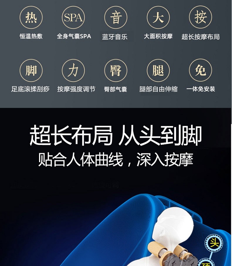 商品名称:凯美帝KM-R3豪华版按摩椅全自动家用全身小型太空豪华舱多功能电动老人器