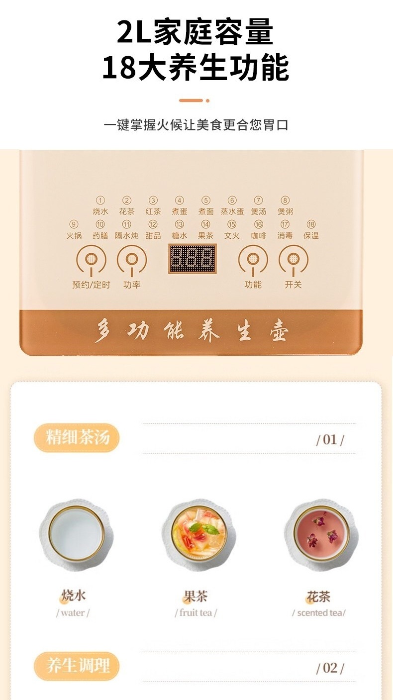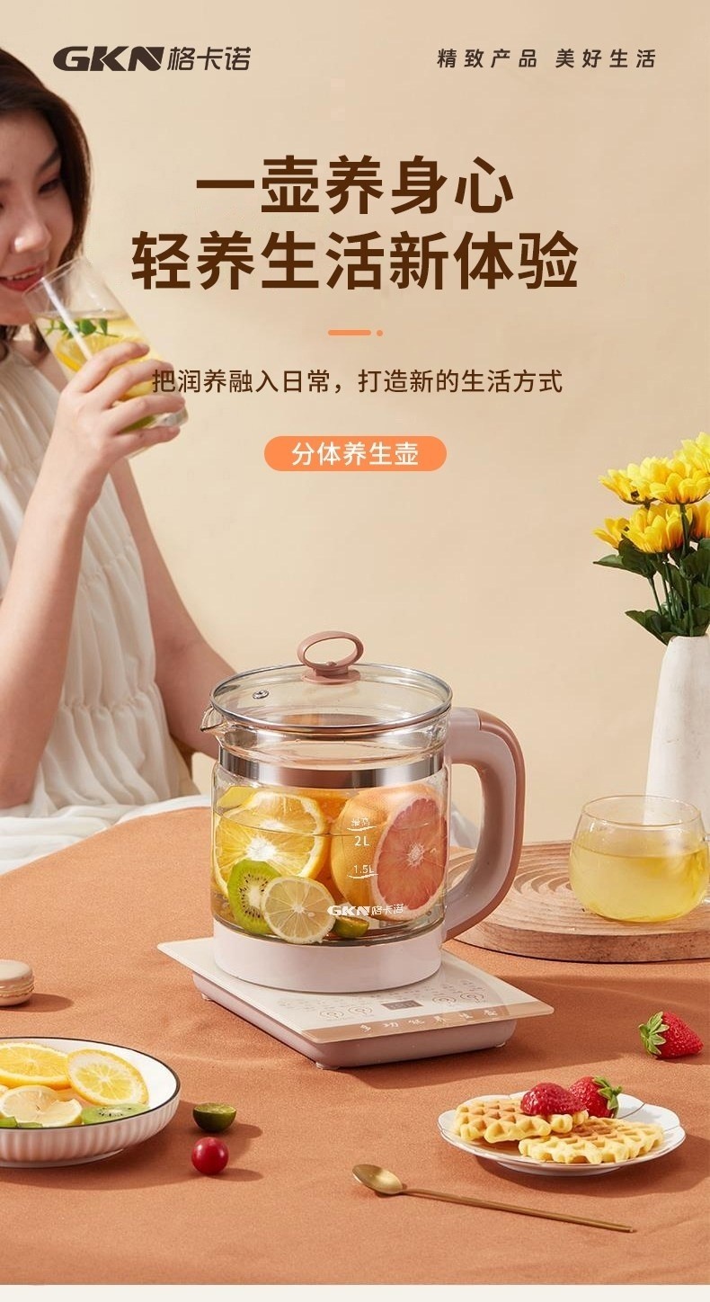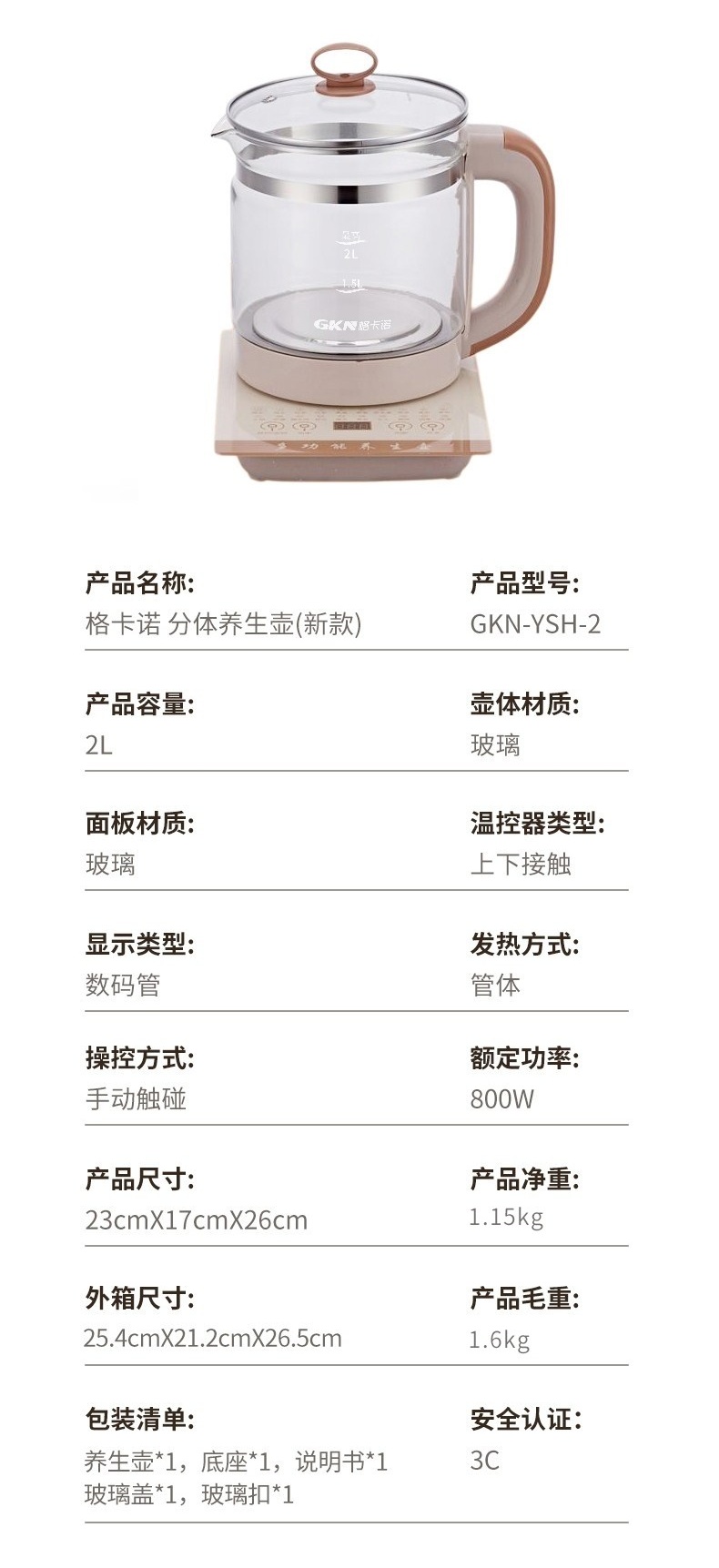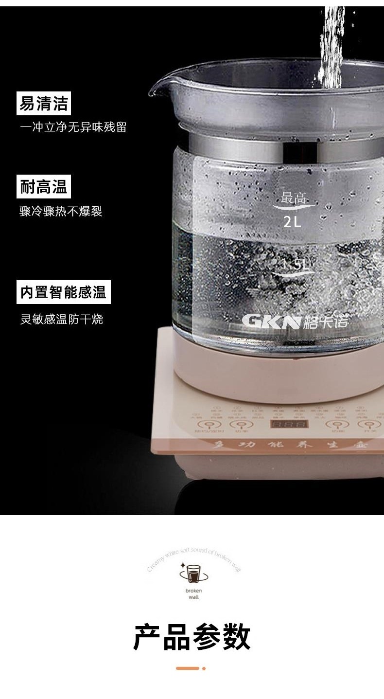 商品名称:格卡诺分体养生壶家用办公室多功能煮茶壶全自动玻璃烧水壶(新款)GKN-YSH-2