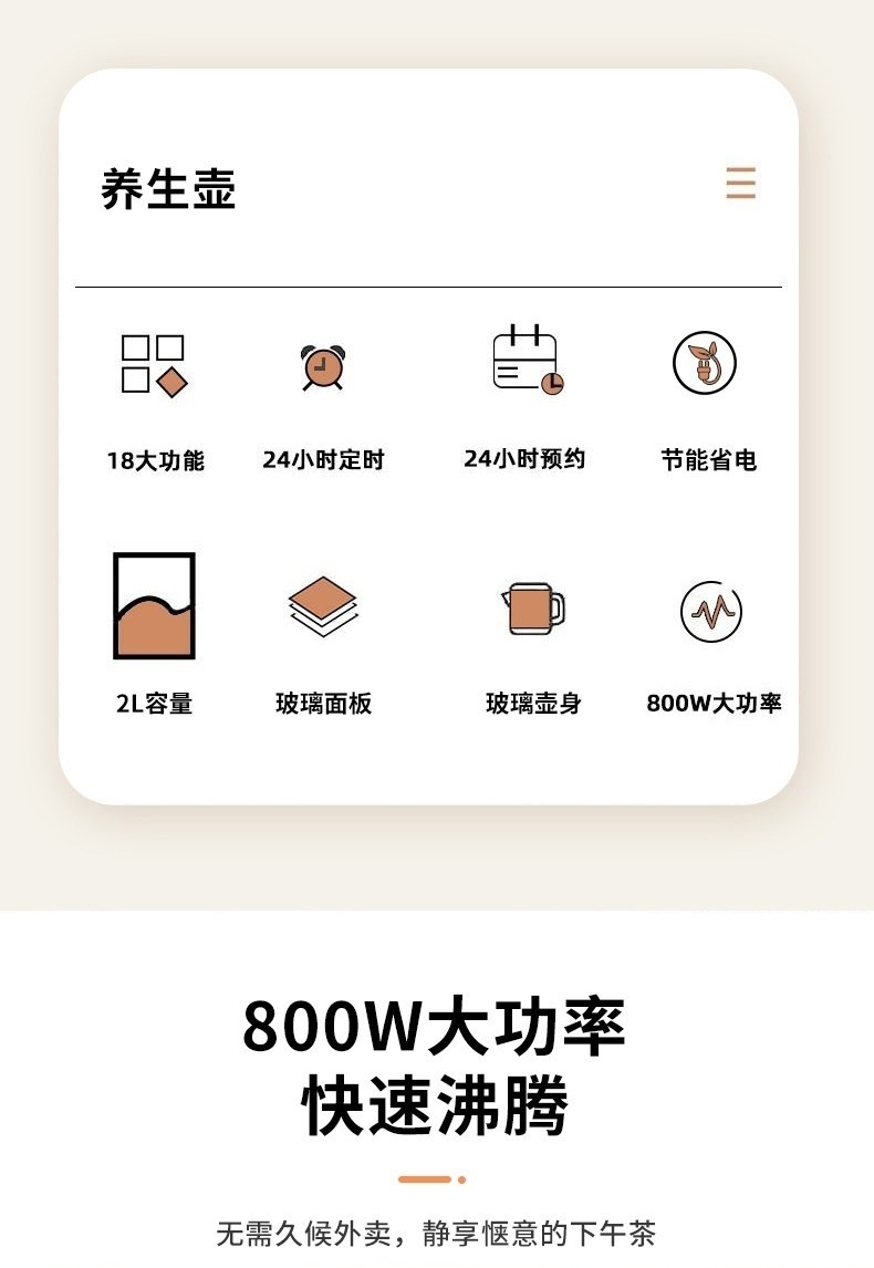 格卡诺分体养生壶家用办公室多功能煮茶壶全自动玻璃烧水壶(新款)GKN-YSH-2