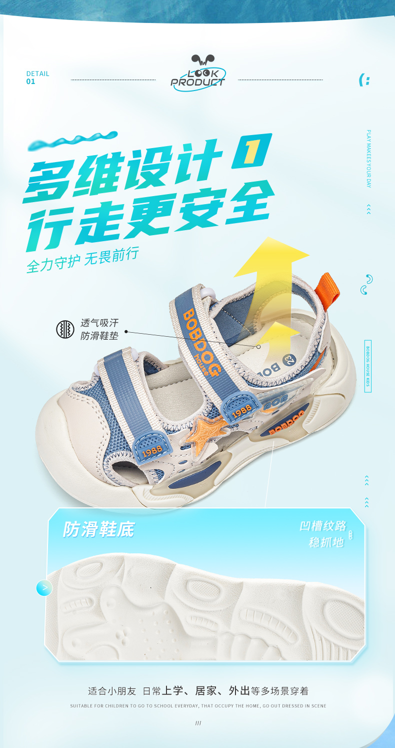商品名称:【断码清仓】巴布豆house童鞋夏季包头学步凉鞋男女小童软底幼儿园室内凉鞋