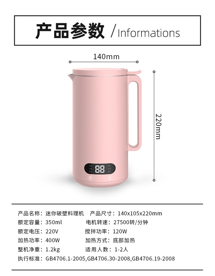 商品名称:好夫人破壁豆浆机迷你冷热双用型便携网红小容量家用全自动免过滤辅食机果汁