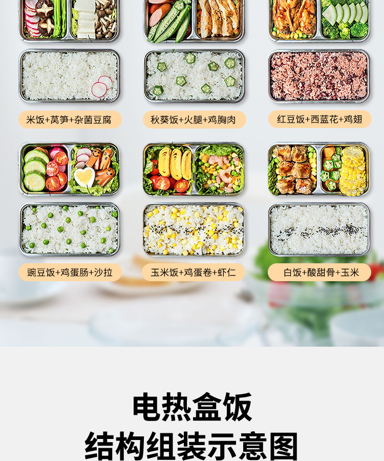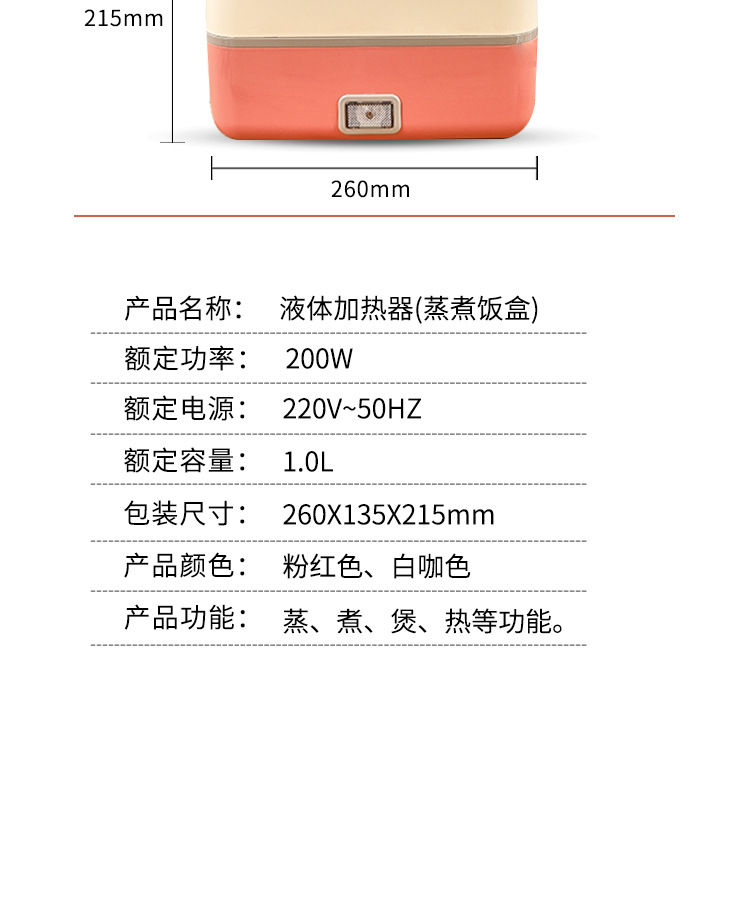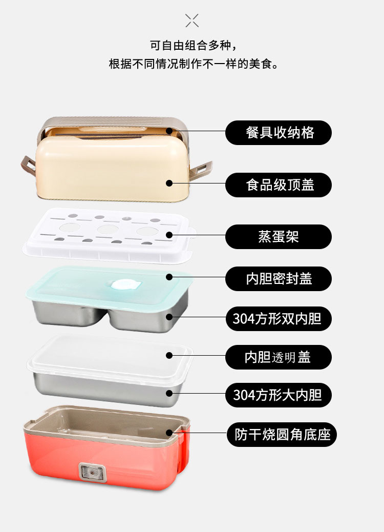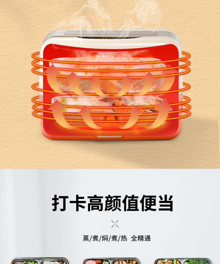 商品名称:电热饭盒便携式电加热饭盒办公室双层蒸煮饭盒保温便当加热饭盒可插电热饭菜礼品