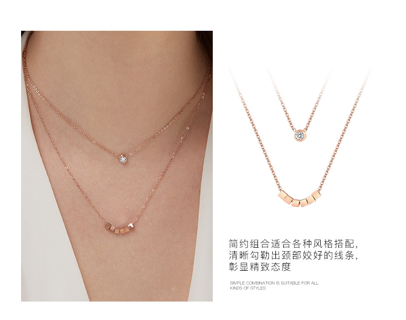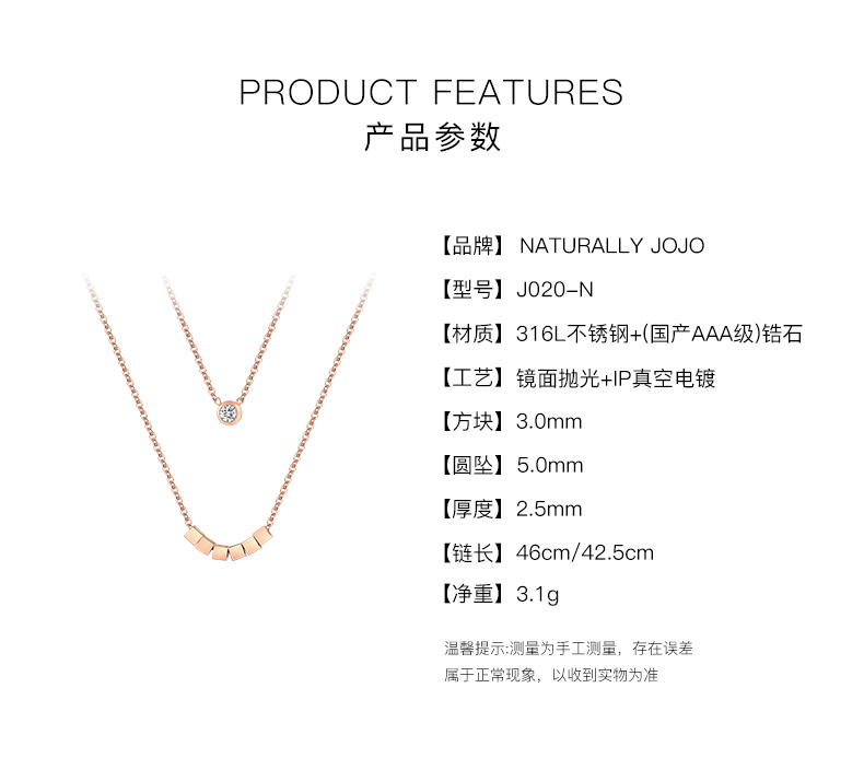 商品名称:NATURALLY JOJO女士彩金多层玫瑰金双层项链女生锁骨链网红气质ins冷淡风钛钢不掉色饰品