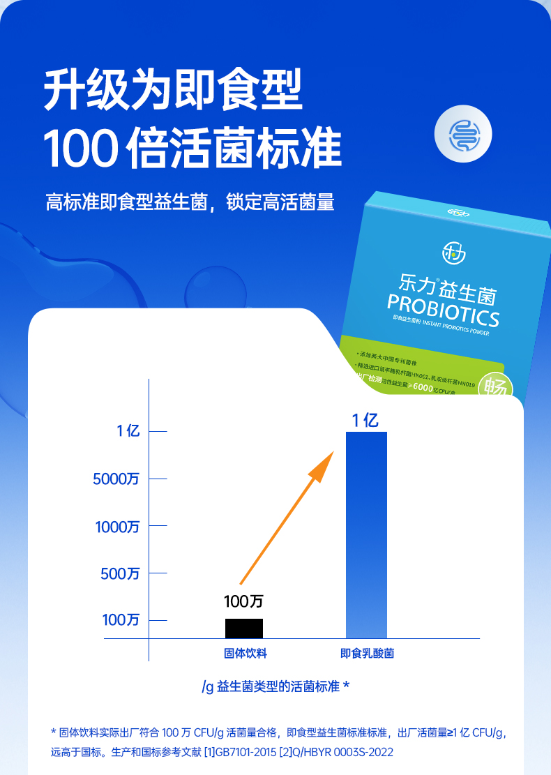 乐力益生菌(畅)6000亿活菌加强版2g*20条装 成人男性女性儿童孕妇肠胃肠道益生元