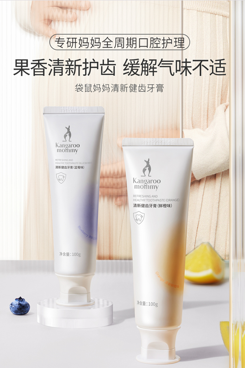 【孕期口腔健康】袋鼠妈妈准孕妇牙膏月子软毛牙刷专用无添加氟清新口气官方旗舰店