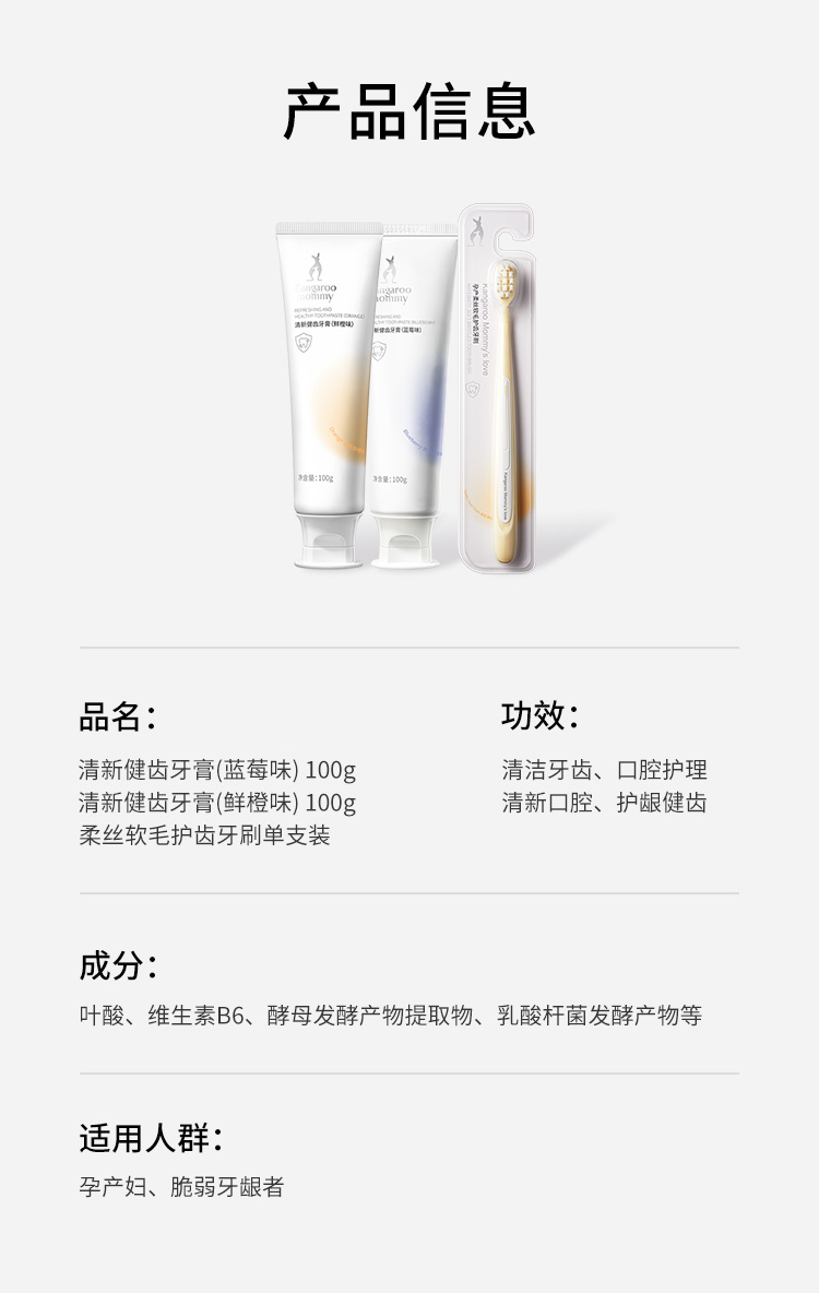 商品名称:【孕期口腔健康】袋鼠妈妈准孕妇牙膏月子软毛牙刷专用无添加氟清新口气官方旗舰店