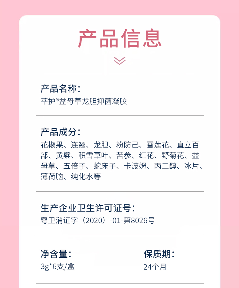 【益母草龙胆抑菌凝胶】3g*6支/盒
