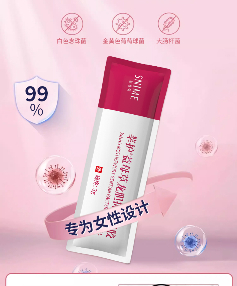 商品名称:舒奈美妇科益母草龙胆抑菌凝胶正品私处护理痒清洁保养3g*6支/盒