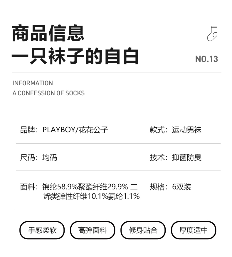 商品名称:花花公子6双装袜子男士短袜防臭吸汗船袜夏季薄款透气夏天成人袜子男春夏薄款短袜