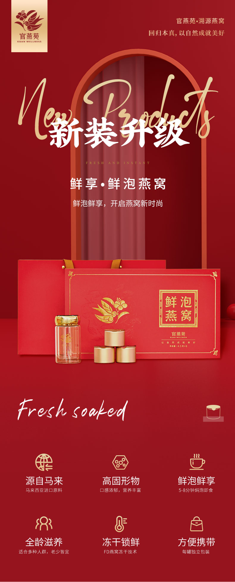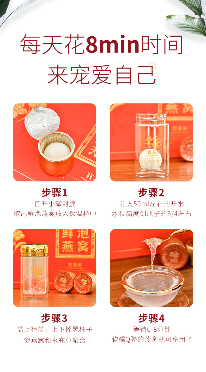 商品名称:官燕苑鲜泡即冲冻干燕窝礼盒4.5g*8罐/盒冲泡即食孕妇产品正品燕窝滋补营养
