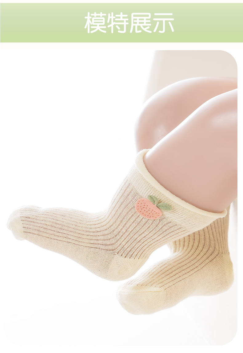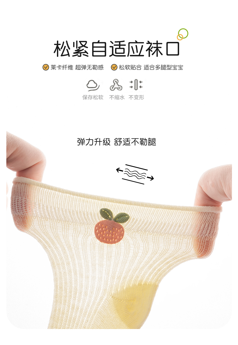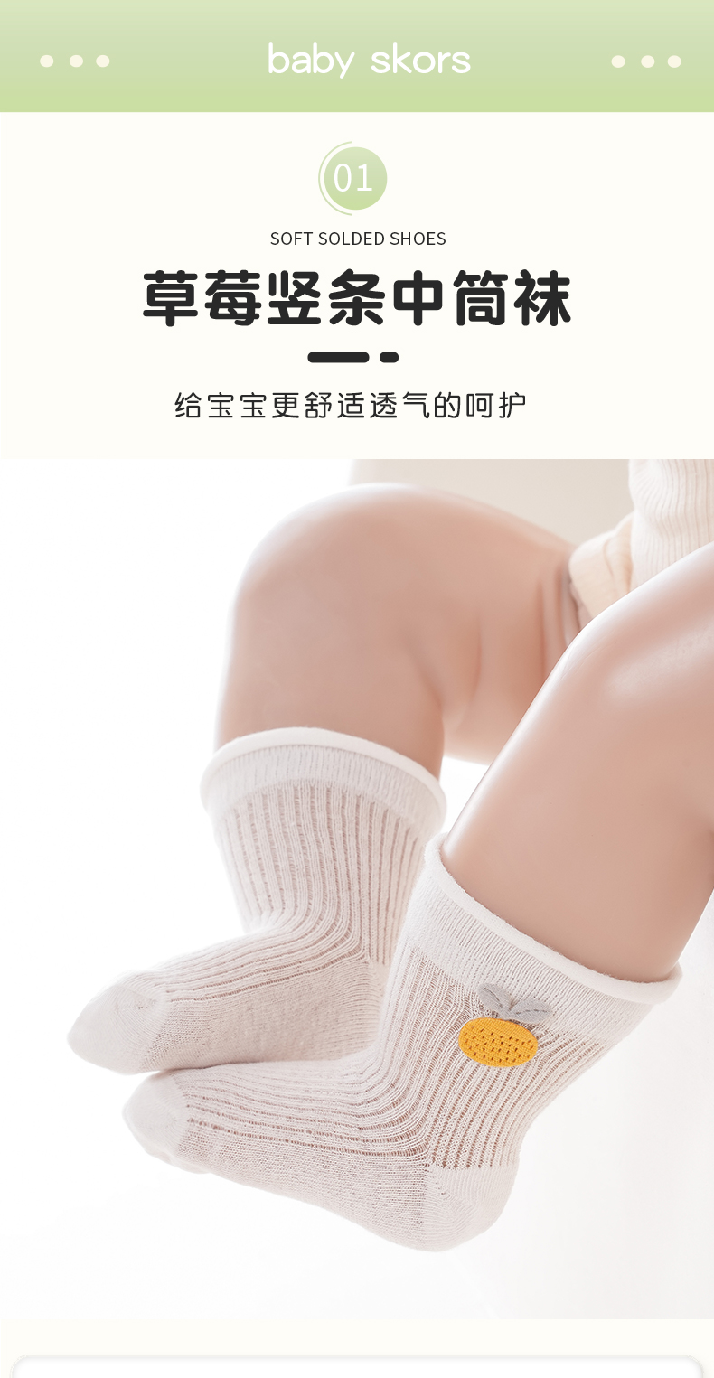 商品名称:婴儿袜子夏季薄款网眼袜草莓配饰竖条纹中筒袜0-3岁宝宝袜子A类新生儿松口无骨棉袜