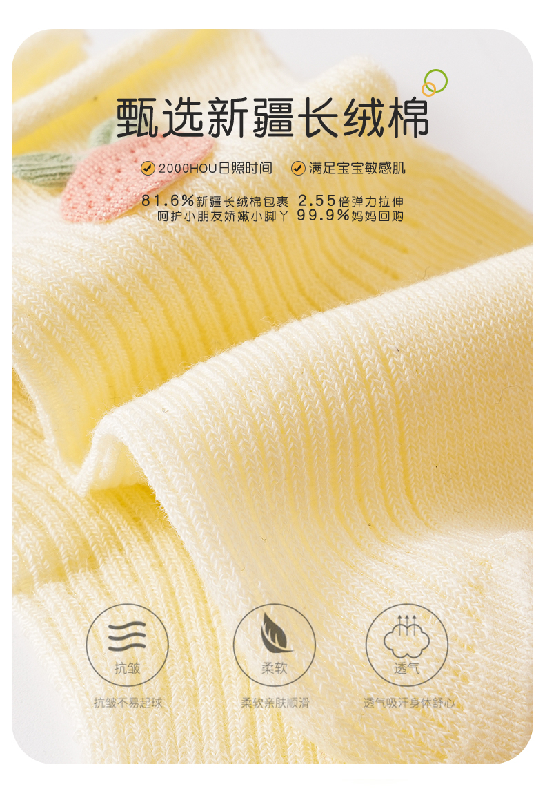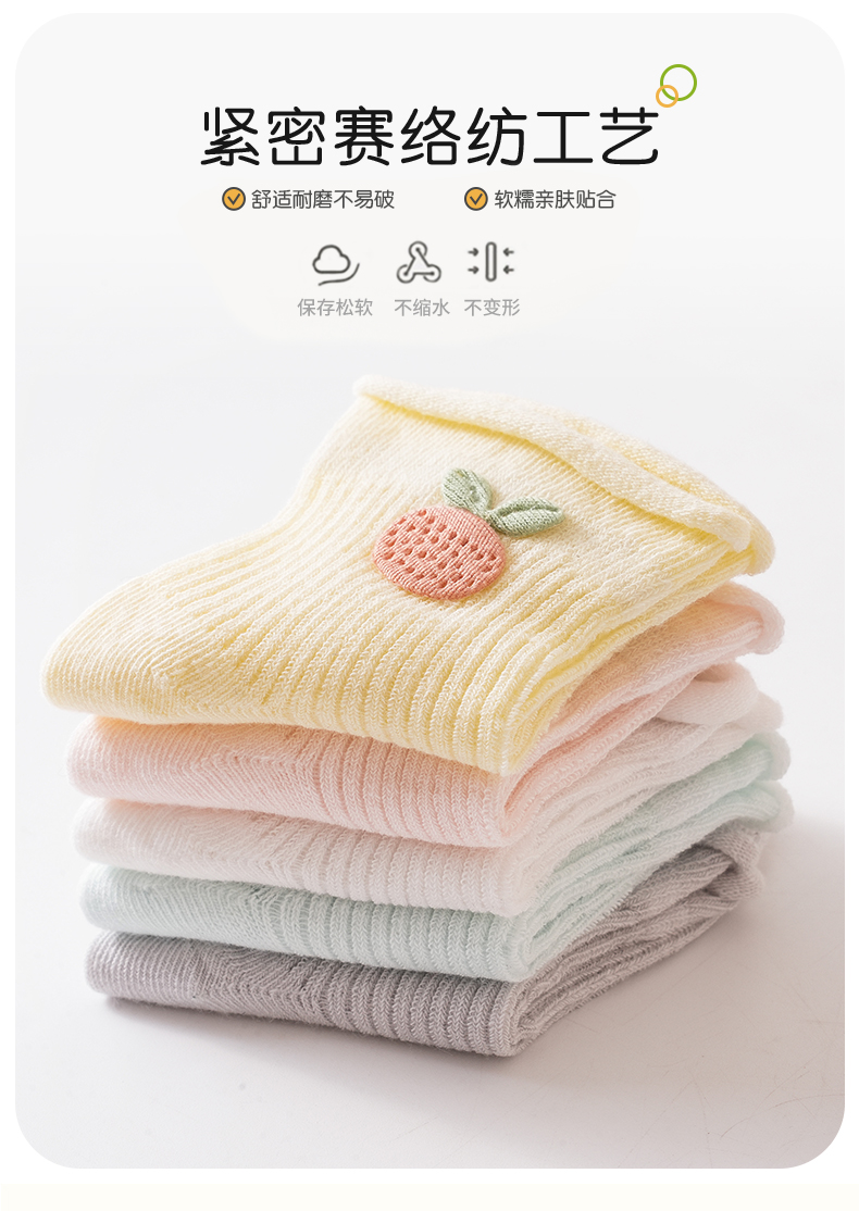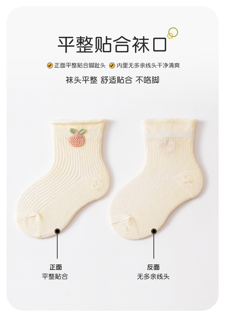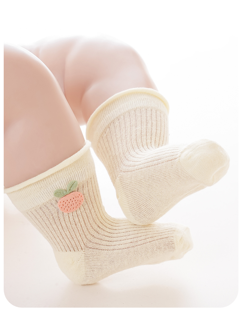 商品名称:婴儿袜子夏季薄款网眼袜草莓配饰竖条纹中筒袜0-3岁宝宝袜子A类新生儿松口无骨棉袜